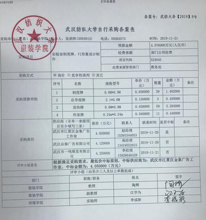 服装展示耗材采购备案表公示