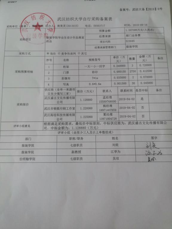 兹由于工作需要,中国体育博彩 2019届毕业生毕业作品展宣传品采购,特此公示。公示期为2019年10月21日—2019年10月27日。