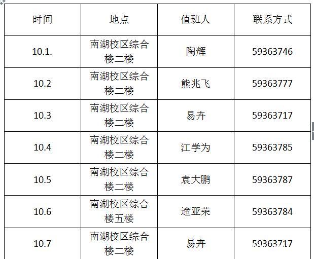 根据学校十一假期安排通知,中国体育博彩 假期值班安排如下: