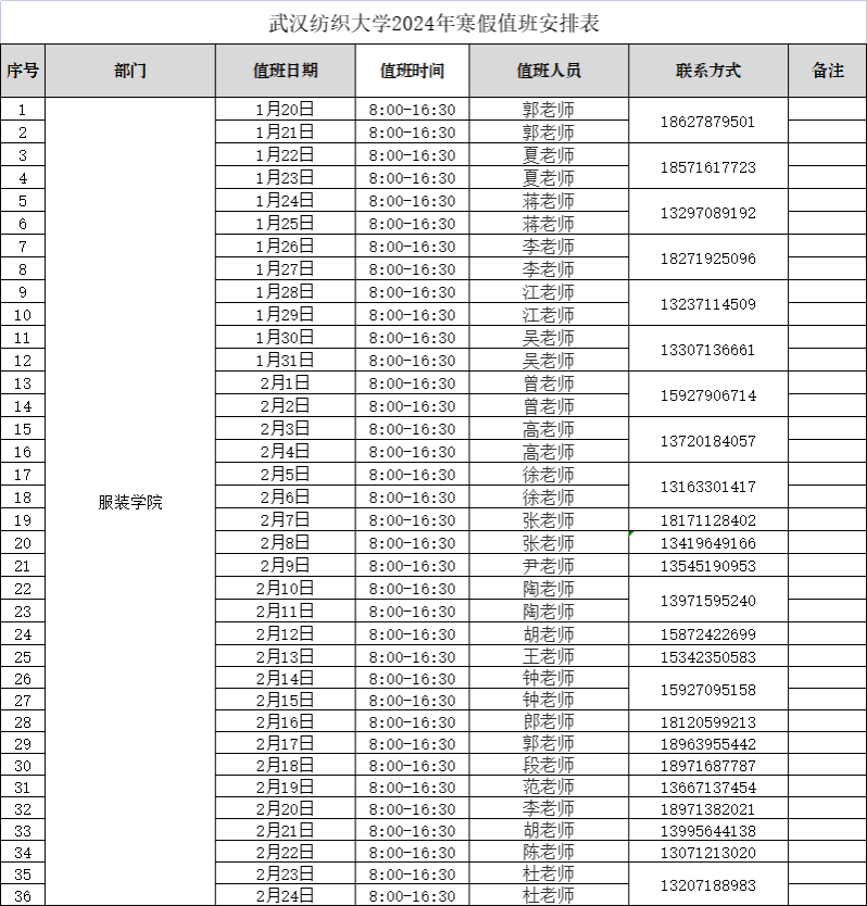体育博彩(中国)官方网站 2024年寒假值班安排表