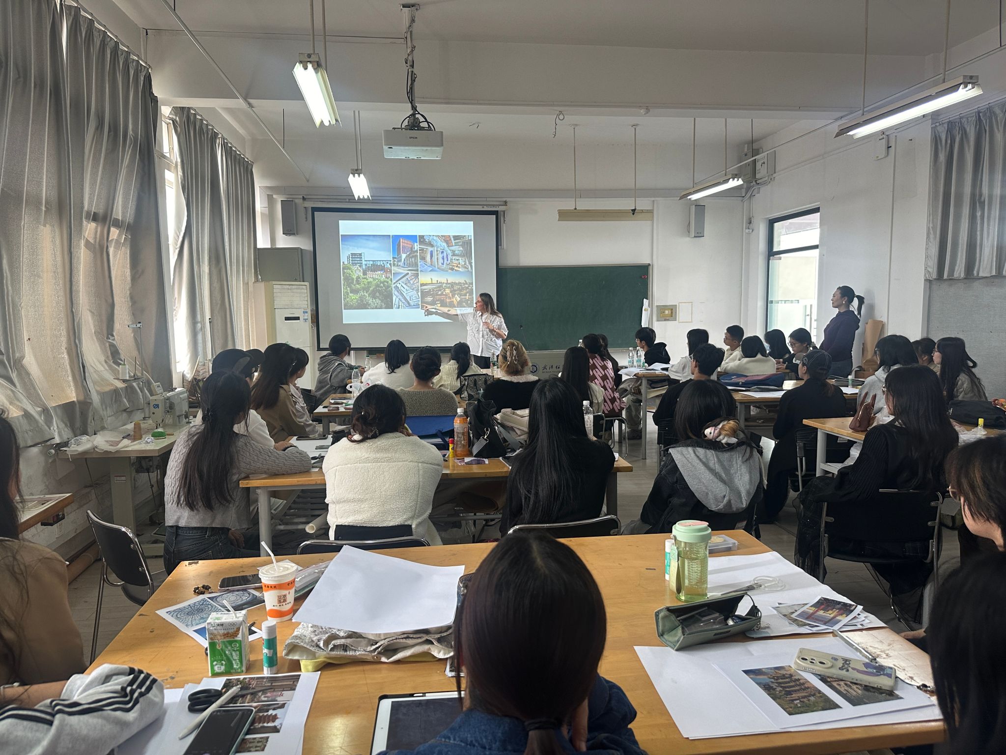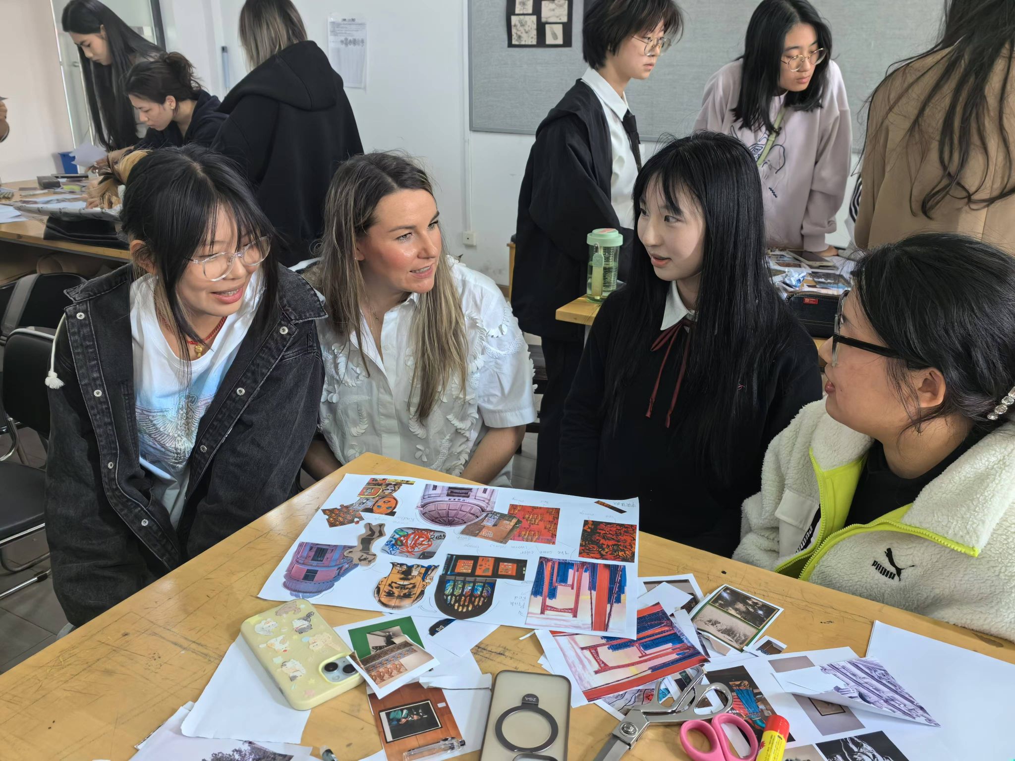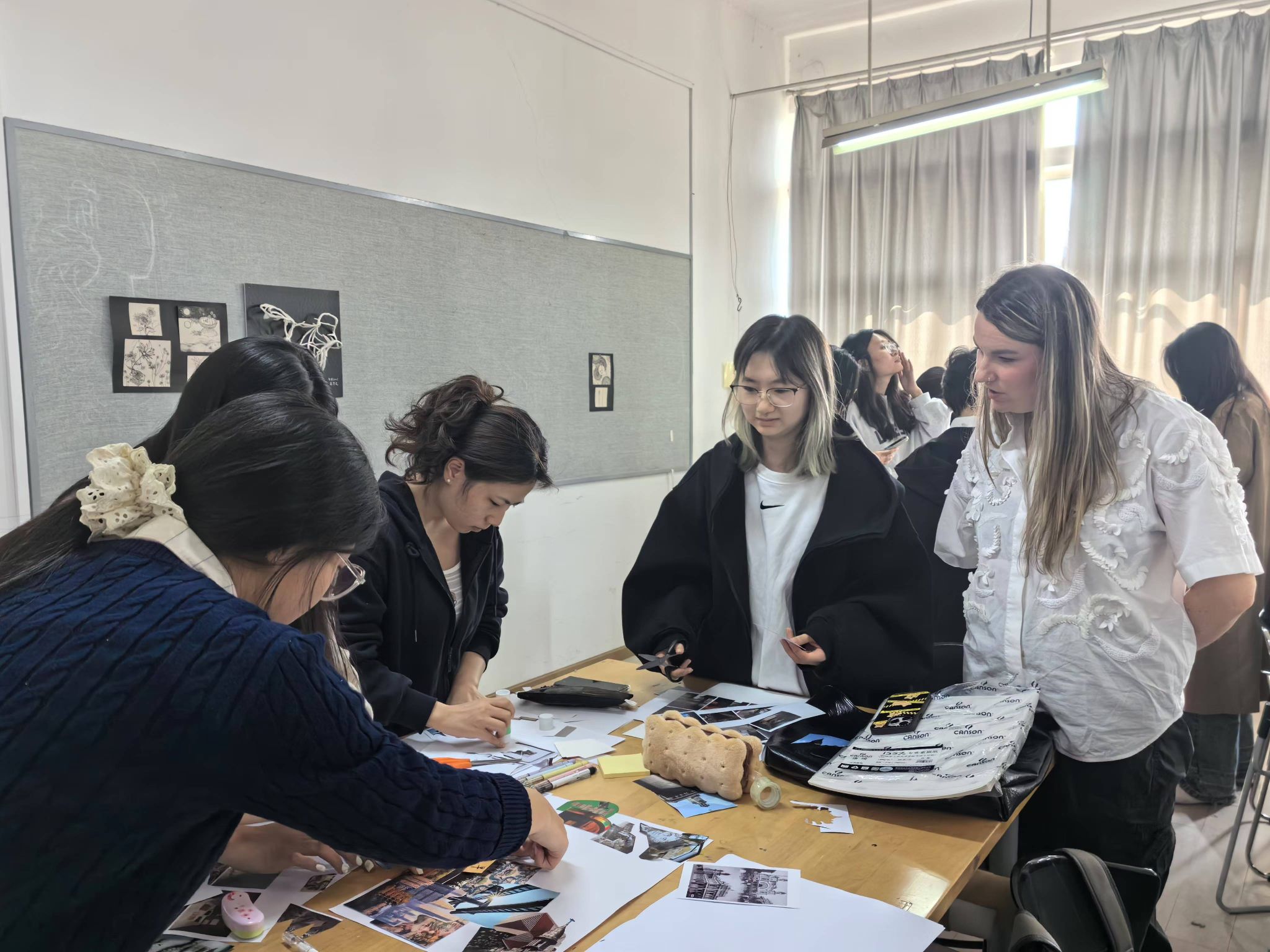 在接下来的实践环节中,学生们利用之前收集的“武汉”与“曼彻斯特”两个城市的图片资料,进行创意拼贴,并从中提炼出关键词,构建出独特而富有意义的概念灵感板。这一过程不仅锻炼了学生的动手能力和团队协作精神,更让他们深刻体会到跨文化交流对于设计灵感的重要性。同学们纷纷表示,这次工作坊使他们受益良多,不仅学到了新的设计理念和技巧,更重要的是,通过国际间的师生深度交流,提升了大家的国际视野。许多同学表达了对未来能够参与更多类似活动的强烈愿望。