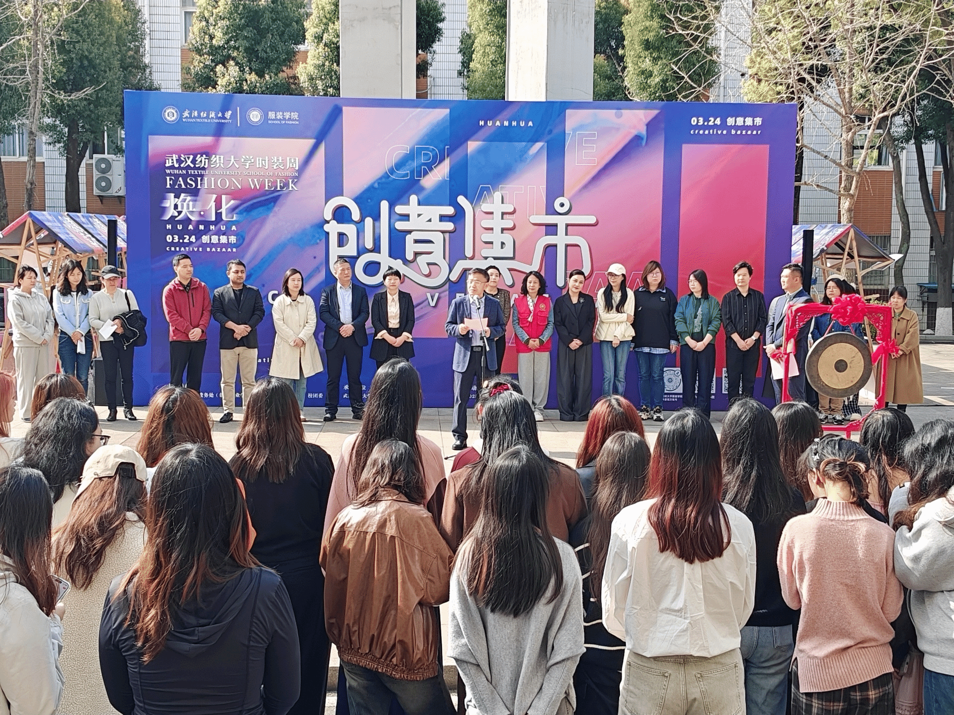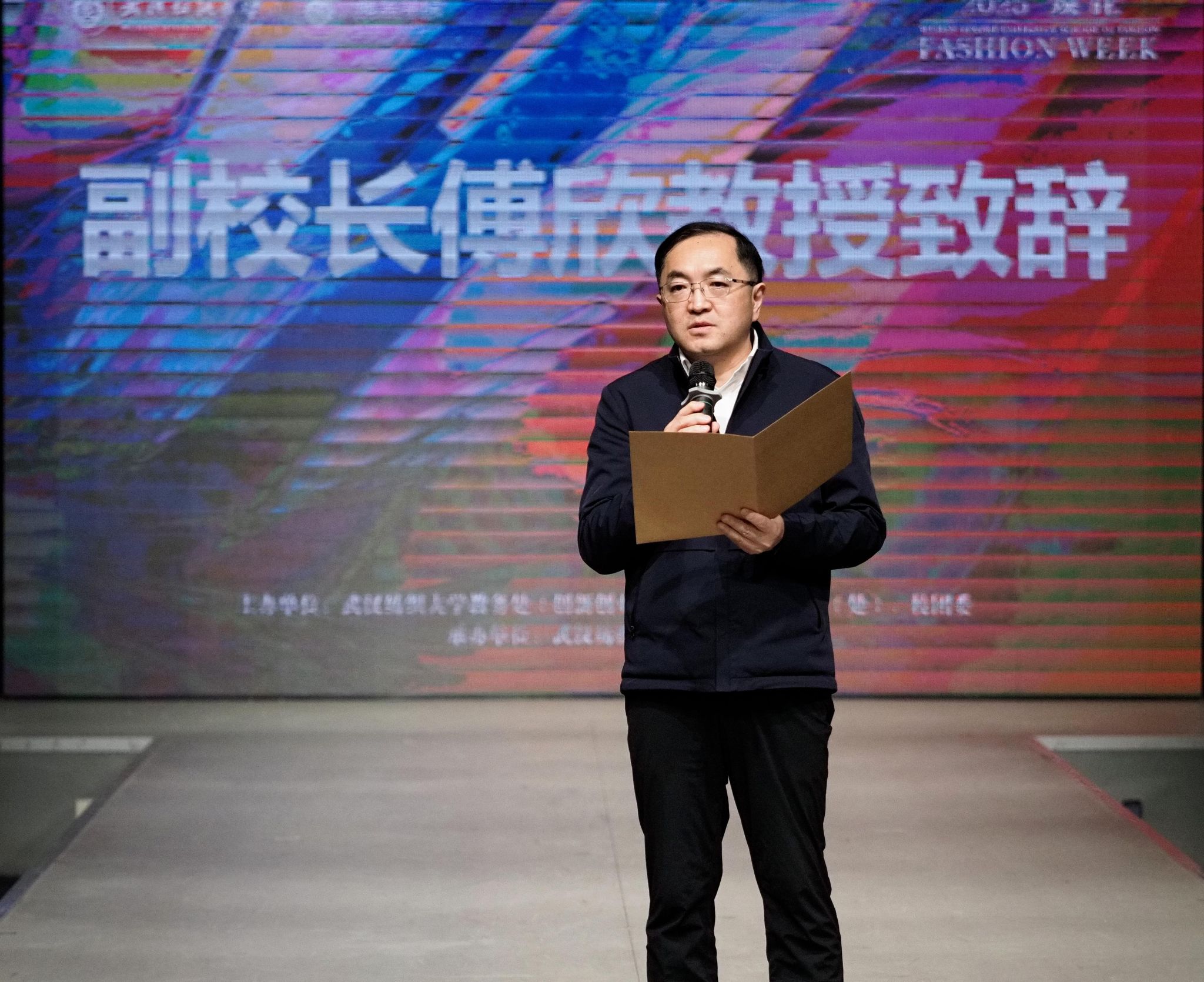 开幕式上,武汉纺织大学副校长傅欣在致辞中指出,武汉纺织大学服装学子以“焕•化”为主题为设计赋能,凭借着“内化于心,外化于形”自信和力量,续写新篇,焕新入画。“焕•化”主题不仅是对毕业设计作品的高度概括,更是对时尚产业未来发展方向的深刻洞察。他希望通过这次时装周,坚持立足行业特色,发挥创意设计与精美制造学科优势,深化“艺术、科技、文化”融合,答好“教育强国”战略下“纺大何为”的考卷,笃行“湖北先行区”建设中“纺大善为”的担当,担起“省属双一流”突破里“纺大有为”的使命。为纺织服装行业、产业培养更多优秀人才。