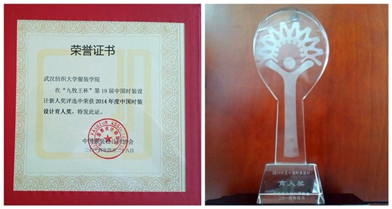 我校 服装设计大四学生 邓卿以综合排名第三的优异成绩荣获第19届中国时装设计“新人奖”,教师冯玲玲获“优秀指导教师奖” ,我校也连续第十五年荣获中国服装设计“育人奖”。