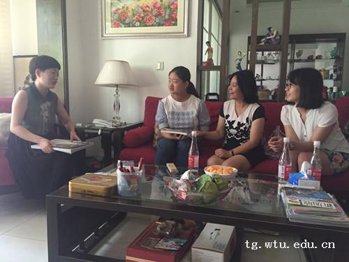 作为首位接受访问的新生,袁梦同学让我们印象深刻。初见她时,稚气未脱的面孔让我们感叹中学生的单纯和家庭关爱的力量。知道我们要过来,袁同学还提前做了功课,她把自己对专业的疑问和QQ群里与同学讨论的话题一并讲出来向我们求证,陈书记逐一给予详细解答。袁妈妈的热情与开朗让我们感受家庭环境的动力,她密切关注来自纺大的信息,“纺大的学生发明了防辐射面料”“纺大的校领导为新生送去通知书”……说起这些,袁妈妈如数家珍。谈到孩子的大学与未来,袁妈妈语重心长,她说:“大学,孩子应该学会独立生活以及如何与他人相处,我们应该放开手,让孩子自己认识社会,奋斗未来。我们的家庭会一直支持她读书,大学、研究生……只要她愿意。”