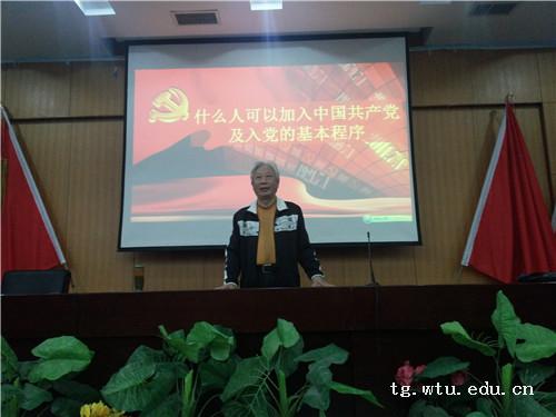 党校的授课,到支部大会的召开;都可以看到李老师忙碌的身影。无论是骄阳似火的夏季酷暑、还是北风凛冽的寒冷严冬;无论艳阳高照,还是阴雨蒙蒙;无论周一至周五的工作日、还是周六周日的休息日。只要有需要,李老师总是能够为了学生党员的发展“随叫随到”。凡是学生党支部召开支部大会,只要邀请,李老师一定参加,从不推脱。有一次,外经贸服设支部邀请李老师参加支部的预备党员转正大会,不料当天一大早就下起了大雨,支部书记便和李老师沟通,雨下的太大,就不必特地从汉口赶过来啦,而李老师却淡淡的说:“阴雨天怎能阻挡一个共产党员的脚步。”李老师还是风尘仆仆的从汉口赶到学校参加会议。每一次的学生党员发展谈话,李老师都很早起床,从汉口坐地铁到光谷转公交提前二十多分钟到谈话的会议室等待学生的到来。很多时候,为了不耽误学生上课,李老师就利用中午休息的间隙与发展对象谈话,而这种情况下通常来不及吃午饭,谈完最后一个学生已是下午两三点;指导学生准备发展材料,经常也是利用学生下午上完课的时间,李老师讲完材料填写规范,往往已是晚上七八点,才能往汉口的家中赶。今年上半年的党员发展过程中,有一位同学因腿部受伤在家休养,李老师就专程坐车去这位同学的家中与她谈话,学生父母提起此事十分感动。