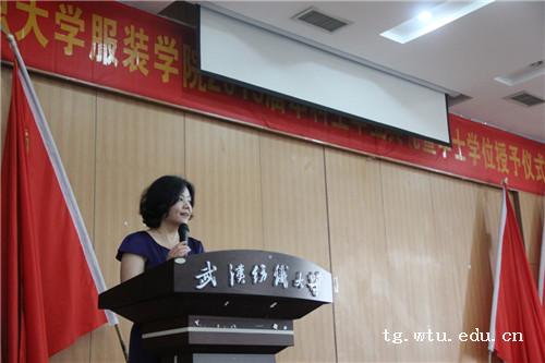发展的家长致以崇高的敬意。他语重心长地讲到,毕业是一个告别过去、走向未来的人生新起点,意味着新一段征程的开始,希望同学们在未来的日子里,能够始终秉持纺大人脚踏实地、勤勉奋斗的优秀品格,坚守理想,以不懈追求、敢于拼搏的精神,迎接挑战,以负责任的态度做人做事,茁壮成长为栋梁之才,承担起对国家、民族和社会的责任。“唯有奋斗,当可任性”。希望大家在走上工作岗位后,不断学习,充分发挥纺大艺工融合的特色,担起传承中国文化的重任,为服装本土品牌的发展贡献一份力量,为中国原创设计添一分风采。