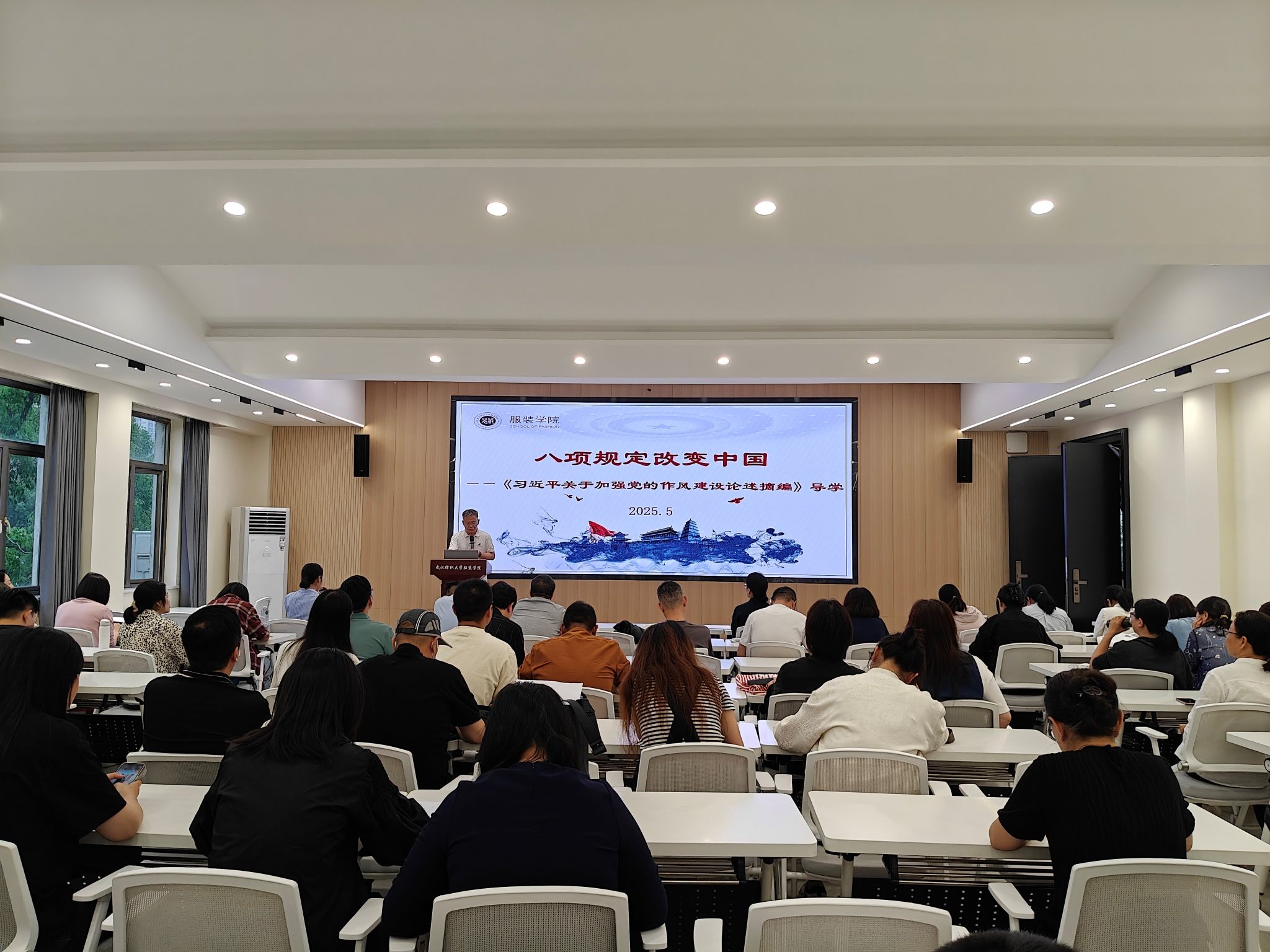 党委书记杜新年为全体教职工讲授了题为《八项规定改变中国——<习近平关于加强党的作风建设论述摘编>导学》党课。杜书记首先介绍了成书背景和基本内容,强调了其在党风廉政建设中的重要地位。随后,深入讲解了学习本书的重大意义,指出这是加强党的作风建设、落实全面从严治党的关键一环。在学习过程中,杜书记要求全体人员从总体上把握学习内容,深刻领会其中精髓。同时,特别提到 “八项规定改变了中国” 这一重要观点,指出八项规定是改进作风的有力切入口,全体党员干部要严格遵守,以身作则。