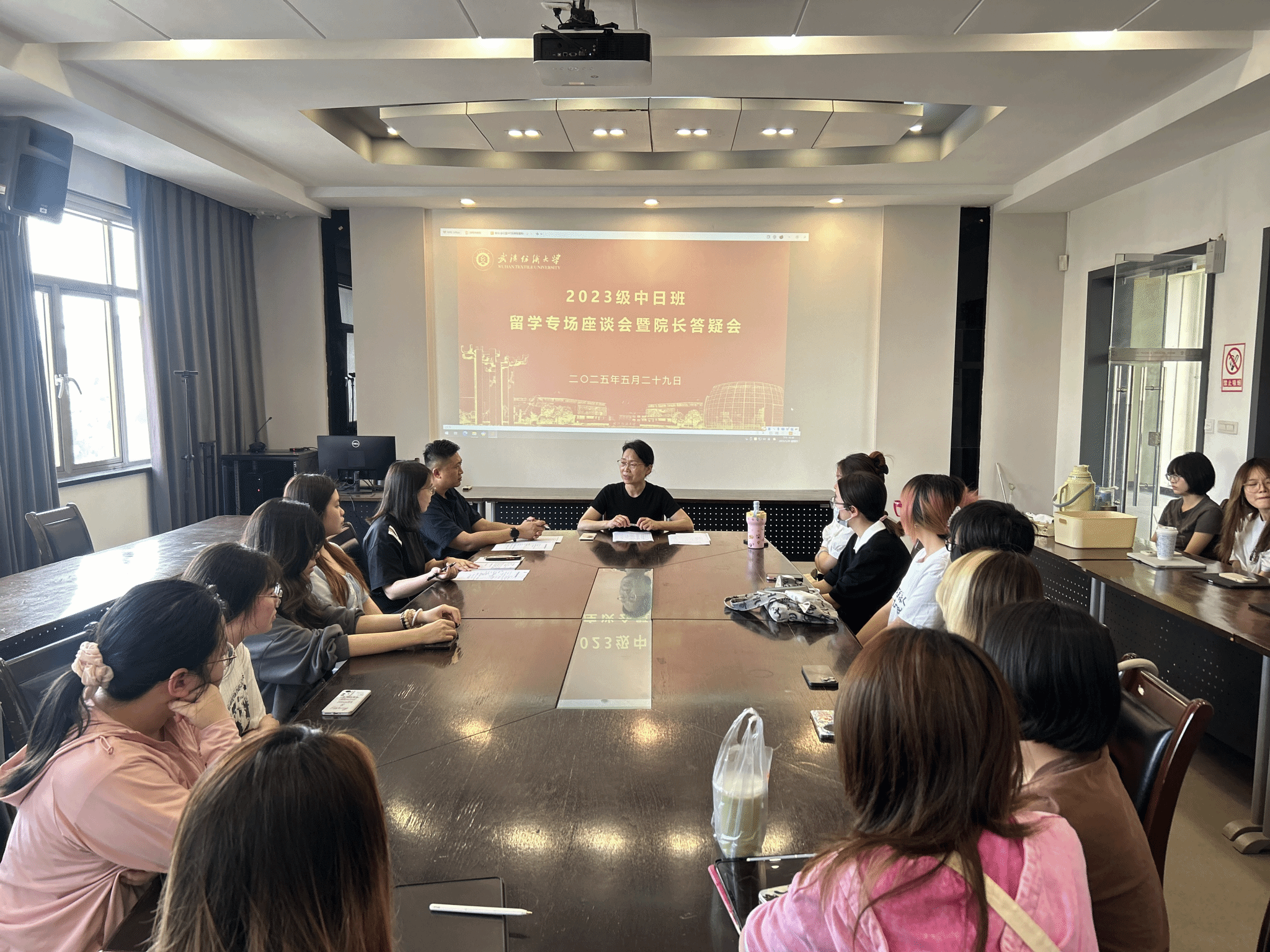 党委副书记郭泰辰,设计三系张元美老师宣讲答疑,中日班2023级同学们积极参加。本次座谈会主要是为同学们提供权威、全面的留学指导,进一步推动学校中日合作办学项目的内涵式发展。