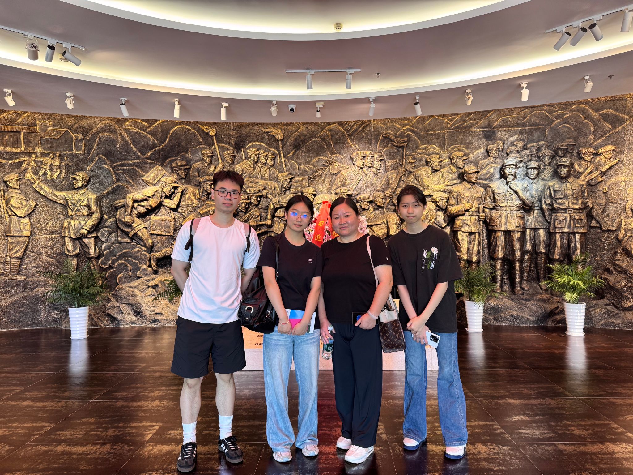 首先,团队走进于都中央红军长征出发地纪念园与“于都礼物”文创公司,从印有长征元素的食品包装到红色文化衍生品,系统调研文创产品如何讲述红色故事,并与工作人员交流设计理念与产销模式,探索红色文化产业化路径。同日,成员们在纪念园通过雕塑与历史陈列,沉浸式感悟长征精神,让红色基因在调研中悄然传承。