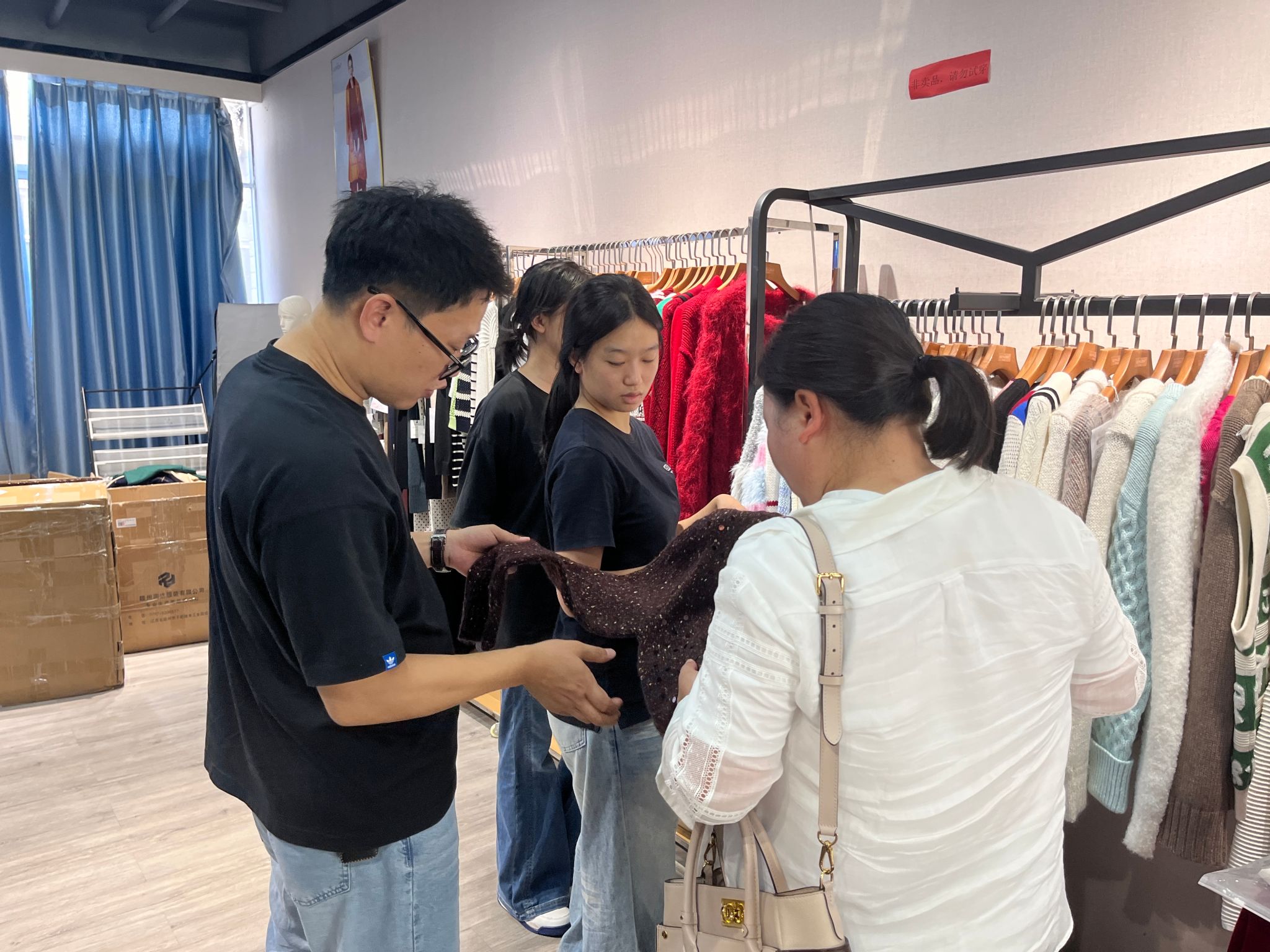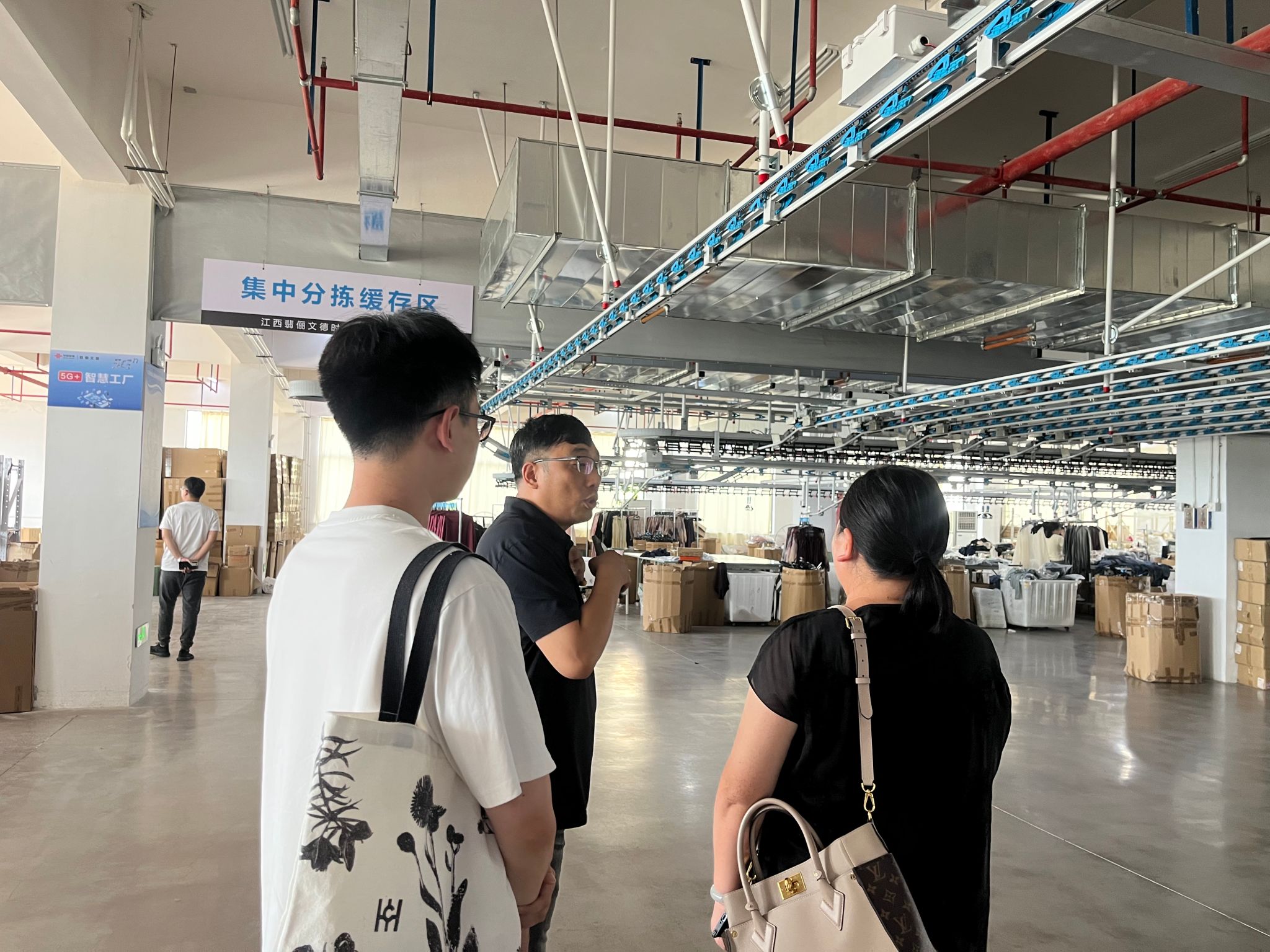 团队走访FDC时尚产业中心,了解到于都已形成从面料到成衣的完整服装产业链,正加速向“文化+时尚”转型,并探索“服装产业+文旅体验”模式,让服装成为展现地域文化的新窗口。