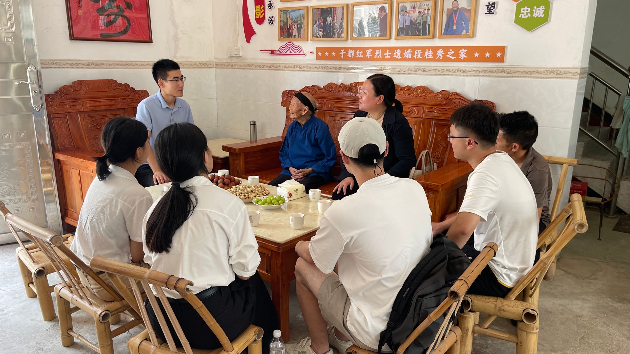 团队探访梓山畲族凤凰湾,与当地副镇长探讨畲族文化的现代转化,如畲族文创抱枕以萌趣形象展现民族特色,为差异化文创设计提供思路;随后前往车溪乡坝脑村探望红军烈士遗孀段桂秀老人,从其岁月故事中触摸乡村人文温度,理解文化传承的根基。当日,团队还走访段屋乡寒信古村落,与当地党委副书记交流古村保护与文旅规划,梳理历史遗产活化路径。