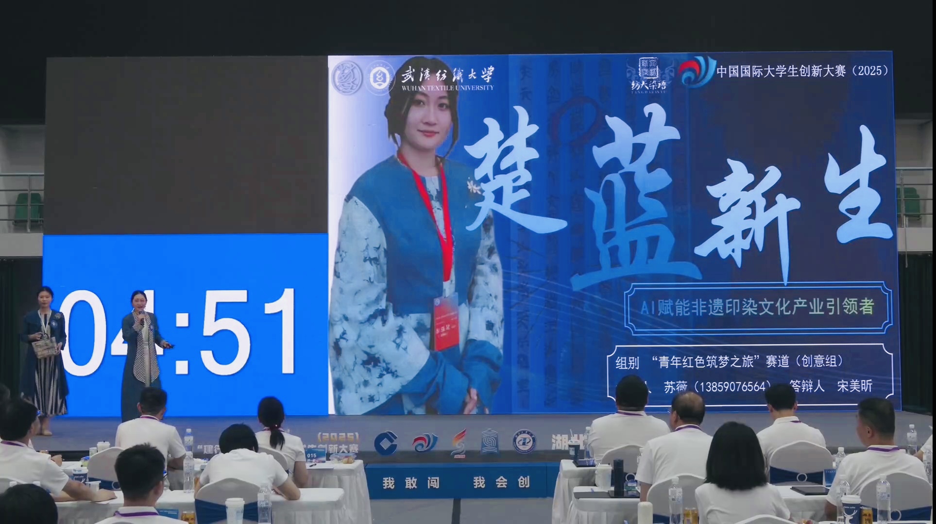 7月24日至26日,由湖北省教育厅主办的“建行杯”中国国际大学生创新大赛(2025)湖北省复赛现场赛在湖北工业大学举行。我院“纺大染语”团队凭借《楚蓝新生——AI赋能非遗印染文化产业引领者》参赛项目,作为全校唯一一个入围省赛青年红色筑梦之旅创意组项目,并获得金奖。此次参加现场路演选手来自2023级研究生苏薇和2024级研究生宋美昕,带领团队10余人,在导师王妮副教授的严格指导下,经过三个多月的精心准备通过院赛、校赛、省赛网评的层层筛选,最终进入省赛现场赛角逐。