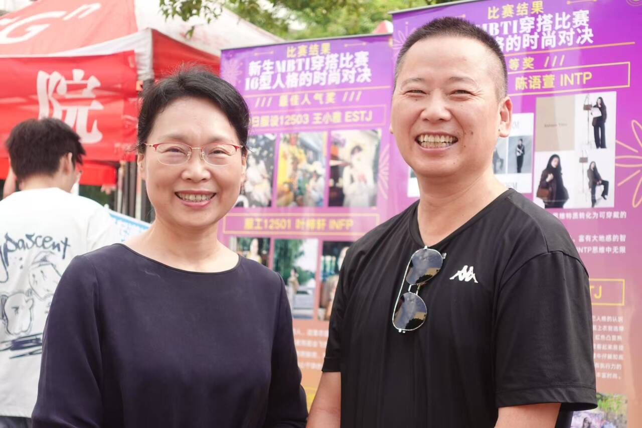 迎新现场更成为一场融专业与创意于一体的教育展示。25届优秀毕业生展板与新生暑期MBTI穿搭比赛作品展板并排陈列,一边彰显榜样力量,一边展现青春创意;优秀毕业设计作品的人台展示,则生动呈现了中国体育博彩