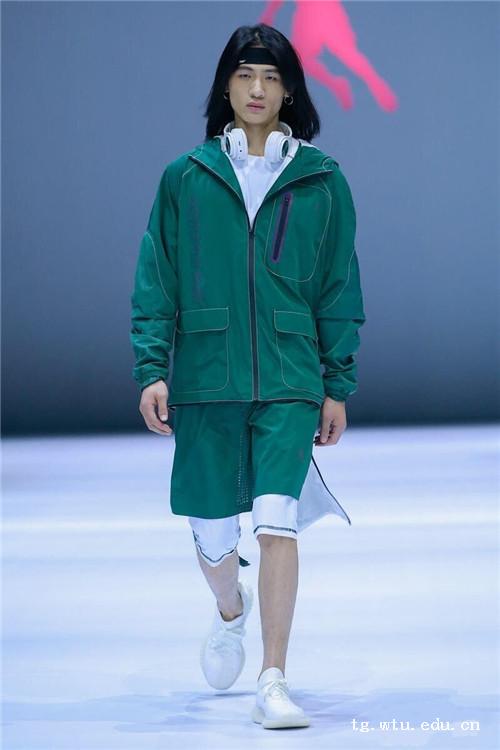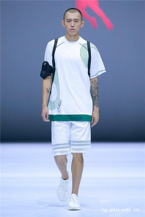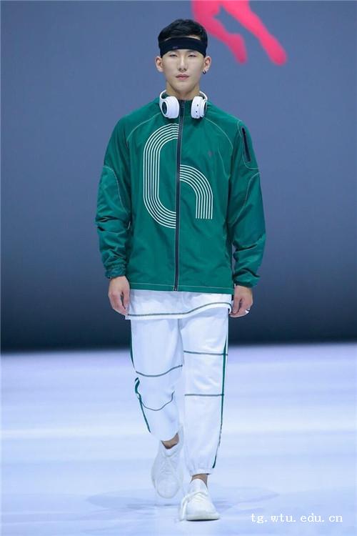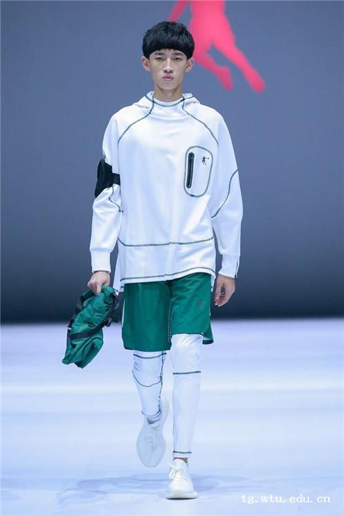 大赛以“跑创未来”为主题,参赛作品紧扣跑步装备的设计,聚焦原创与创意构想,着力提现装备的实用性和创新性,以拓创跑步运动设计的未来。进入总决赛的20组运动装设计作品,共来自12说大专院校,此外还有两位只有设计师参加。魏强同学紧握运动的“健康本质”,围绕“跑步时装”,追寻创意、奔向未来,以“Healthy Run“的运动装设计理念从众参赛作品中脱颖而出获得第三名的好成绩。其作品以宽松的款型设计迎合当下的嘻哈潮流,采用最环保的白色与绿色为主体色彩体系,同时融入田径跑道的元素,将3D反光压胶、激光穿孔与印花工艺巧妙结合给予奔跑者在不同场合上的穿着,整个系列作品集功能、舒适、美观、多样性于一体。