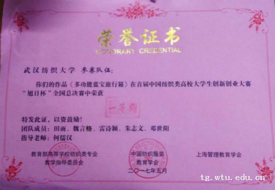 承办的首届中国纺织类高校大学生创新创业大赛“旭日杯”全国总决赛在东华大学圆满落幕。我院魏言格、朱志文等同学参与的项目获一等奖。