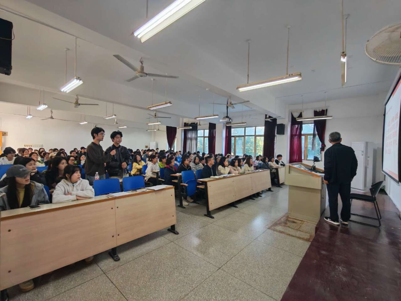 杜书记以当前社会热点问题切入,针对世界纷争、社会内卷和个人焦虑等现象,引出本次思政课的主题。他以儒家修身智慧“毋意、毋必、毋固、毋我”为核心,深入剖析了个人修养的“四毋准则”。杜书记指出,“四毋”的核心在于“毋我”,旨在引导大家避免主观臆断、一意孤行、固执己见和自以为是,从而破解常见的心性难题。在讲解“毋意”时,杜书记引用“颜回偷吃”的典故,警示主观臆断的危害,强调“没有调查就没有发言权”,倡导人际交往中要保持信任与坦诚。对于“毋必”,他倡导“但行好事,莫问前程”的开放心态,鼓励学生在人际交往中保持弹性。谈到“毋固”,杜书记告诫同学们在行为上不要固执己见,阐释了“求大同存小异”的包容智慧。而“毋我”则被视“四毋”的核心,杜书记强调只有跳出自我中心,遇到挫折,先诸己后诸人,才能提升人际交往能力,凝聚协作合力。