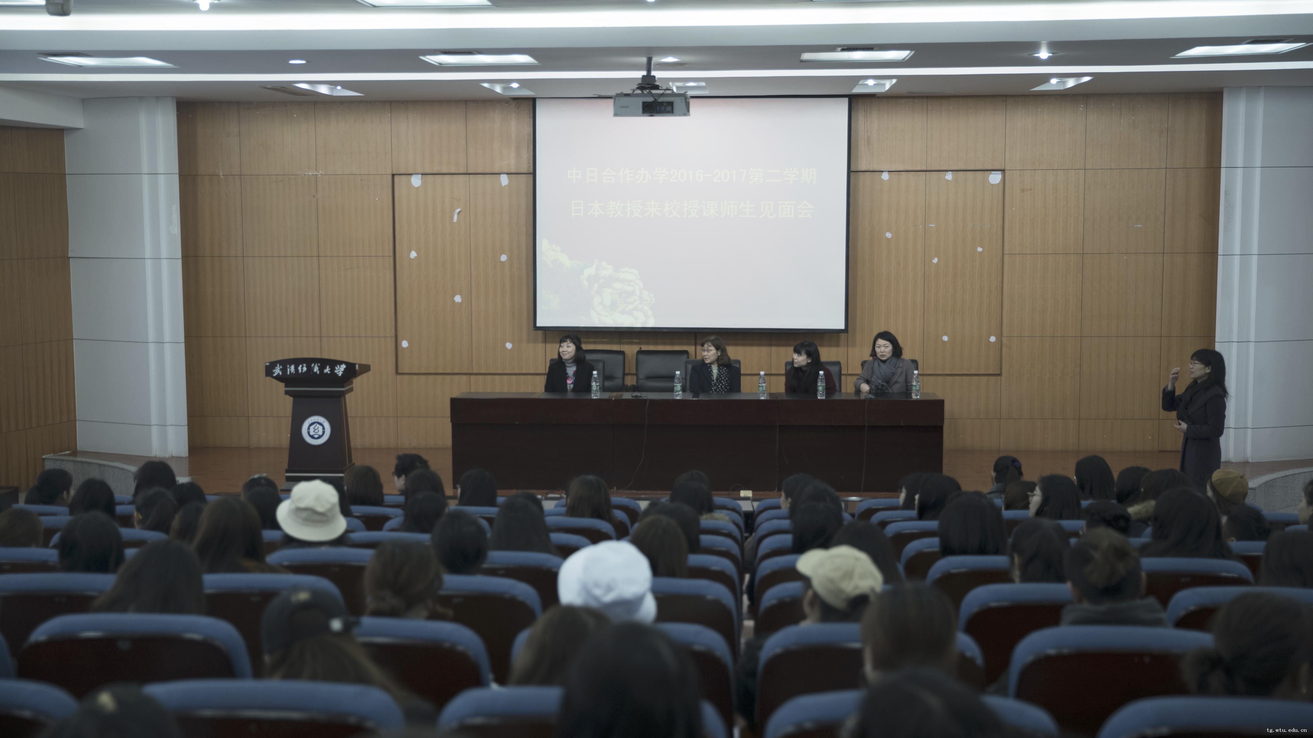 迎来了日本文化学园大学的横沟美智子教授,大桥宽子和幸村麻未三位老师,她们即将在我校开展为期2周的专业教学工作。3月14日上午十点在南湖校区T201教室举行了中日合作办学师生见面会,参加见面会的有中日班2015级、2016级的全体同学,还有中国体育博彩