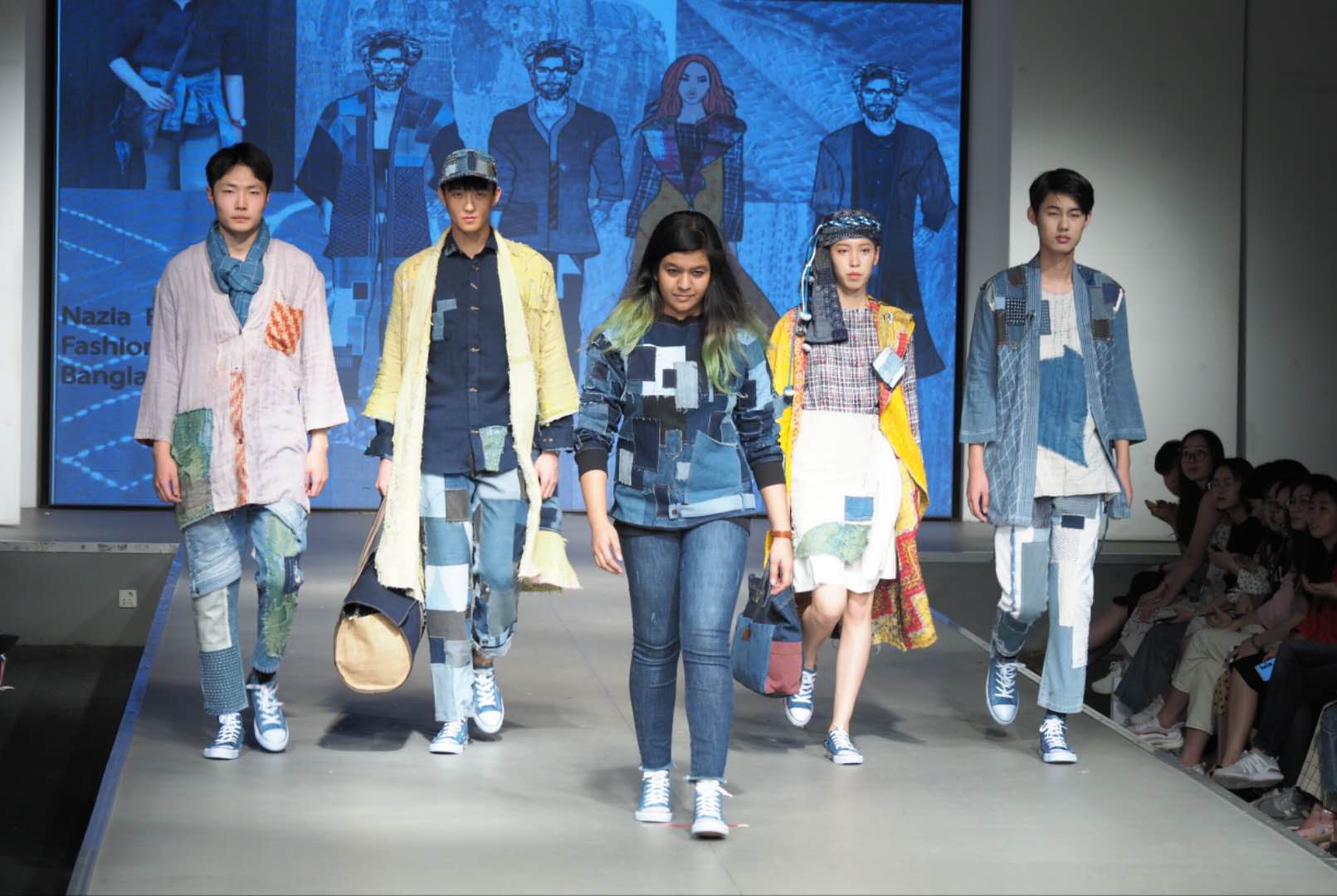 的同学前来观摩,掌声不断,俨然一场多元文化交融与碰撞的时尚饕餮盛宴。