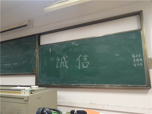 最后,16级的辅导员张智梅老师与18级辅导员尹俊华老师同样也引导同学们树立良好的考试纪律,一丝不苟,杜绝一切考试作弊行为,用诚实的考场作风来证明自己的实力,用诚信的态度来证明自己的风尚。由此可见“诚信做人”的重要性。