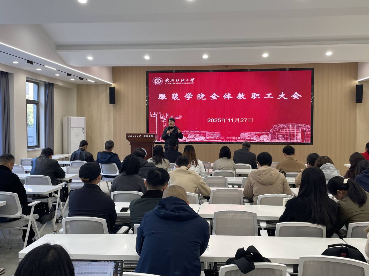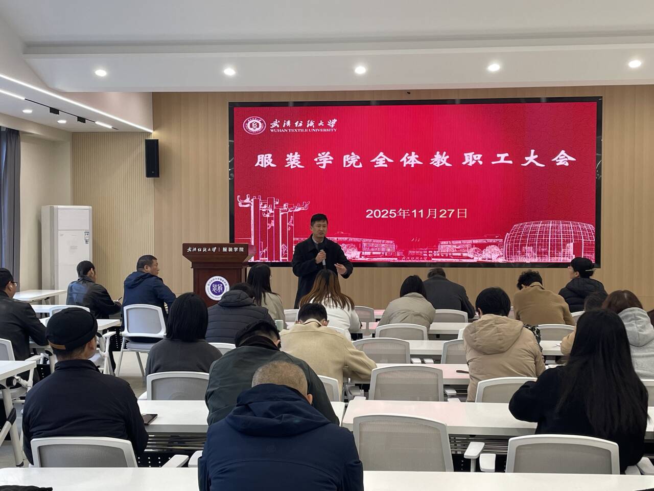 党委副书记郭书记聚焦学生管理与就业工作。他就近期学生心理危机处理相关情况进行案例分析,强调全体教师需进一步加强教学互动,构建 “教学 - 管理” 协同联动机制;针对临近期末学生面临的学业压力与社交压力,要求教师多渠道开展心理疏导,帮助学生调整状态;在就业工作方面,倡导转变就业理念,鼓励学生关注多元化岗位,拓宽就业渠道,全体教师需主动参与就业指导,助力毕业生高质量就业。