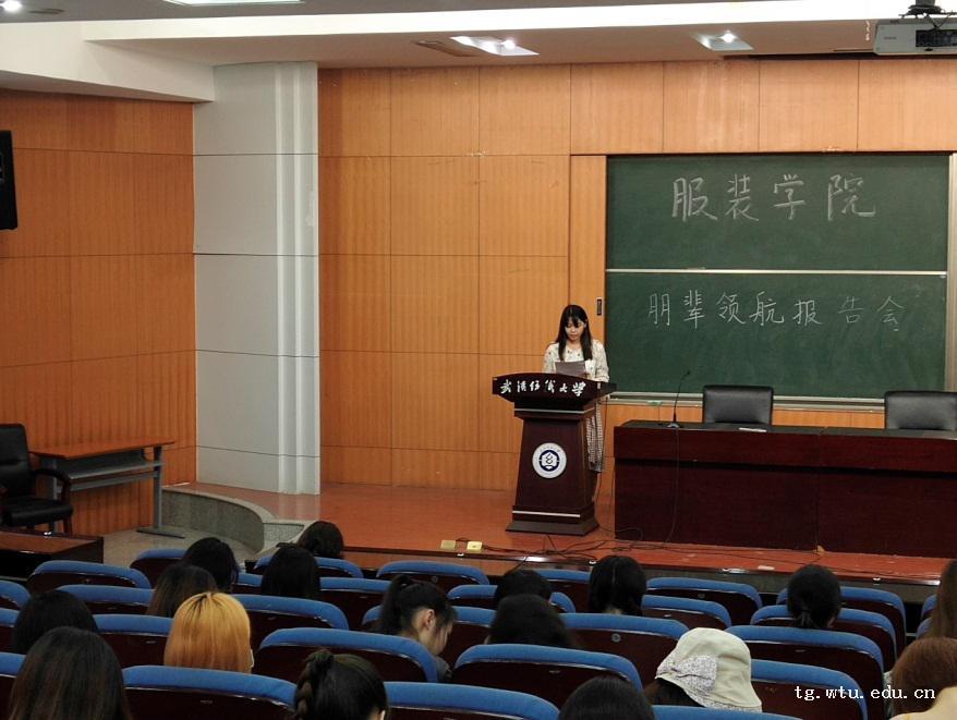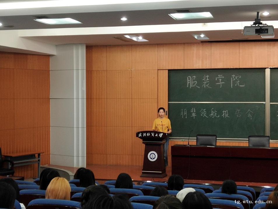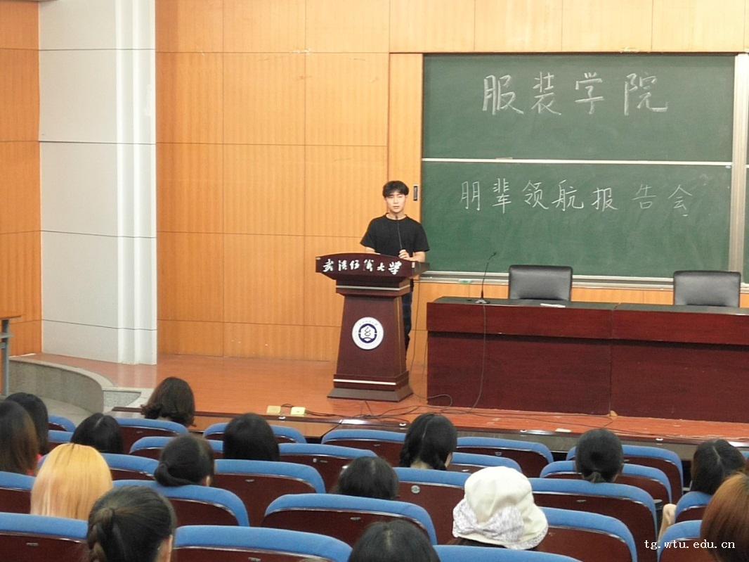 第一位是考取东华大学服装设计与工程专业的学长魏言格。学长向大家介绍了这一专业的考试科目并向大家推荐了几所服装设计与工程专业比较强的学校,如:武汉纺织大学、北京中国体育博彩