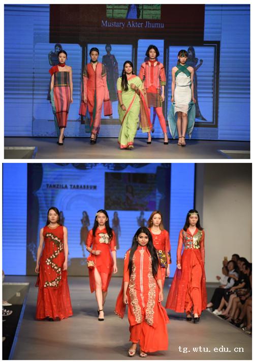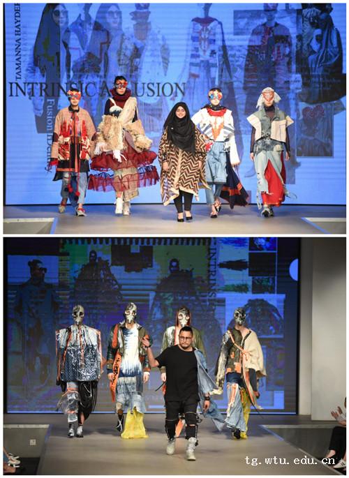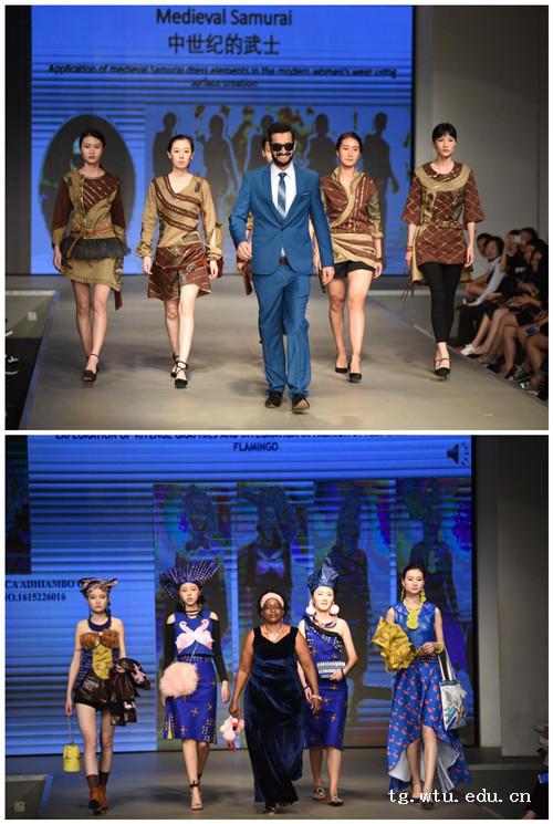 随后6位留学研究生的设计系列充满了浓浓异国风情。在各位导师的精心指导下,他们将自己本民族的服饰文化符号和时尚流行的语汇相结合,设计出整体感强,又不失生动活泼的系列作品。