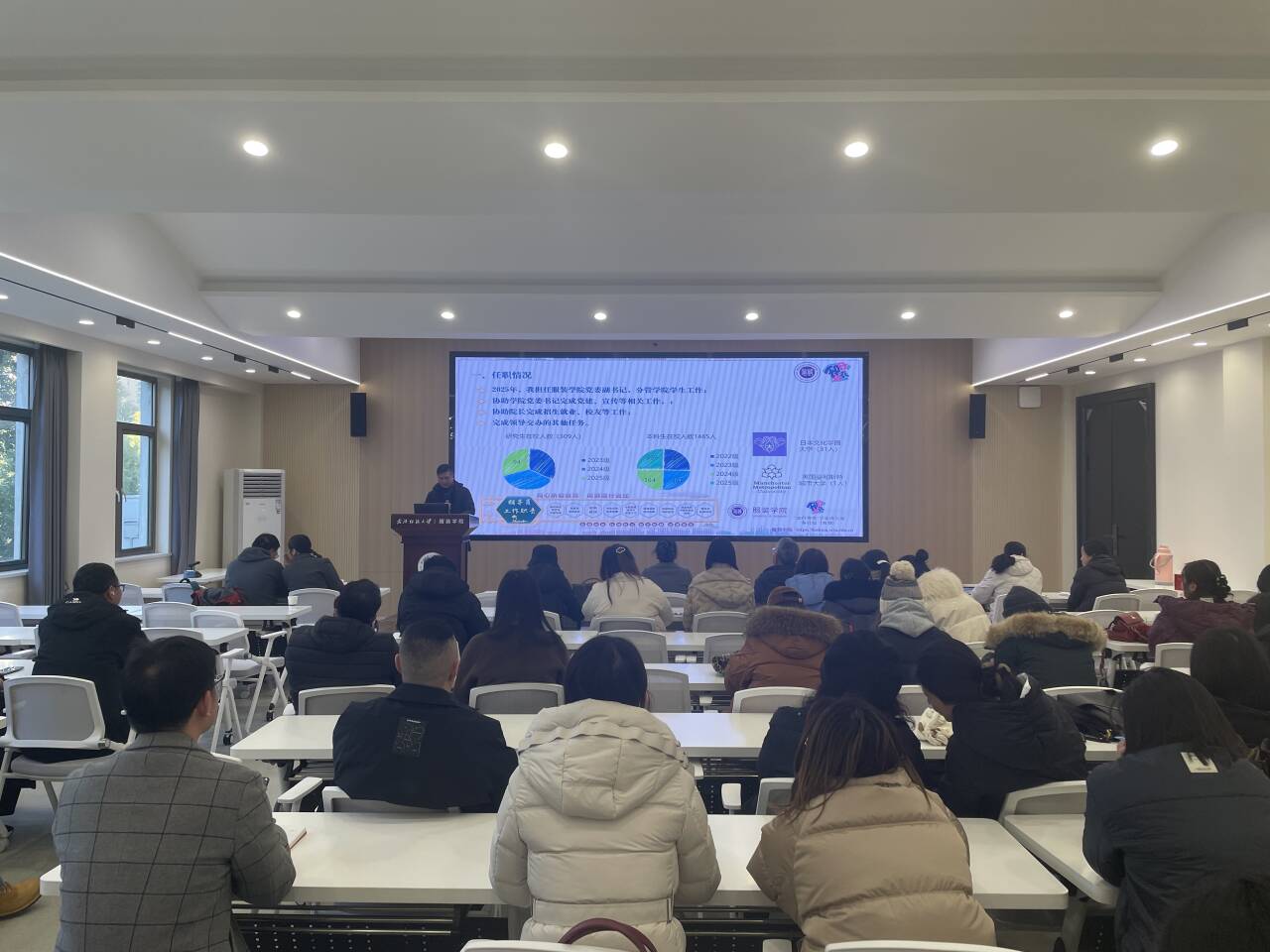 在学科建设、人才培养、科研创新、国际合作、招生就业等重点工作取得的进展。同时,她直面当前存在的学科交叉融合不够深入、科研基金质量有待提升、专业改革力度需进一步加大、国际化覆盖范围不足、就业指导精准度欠缺等问题,详细阐述了2026年工作计划,并就自身履行党风廉政建设责任制情况进行了深入剖析。