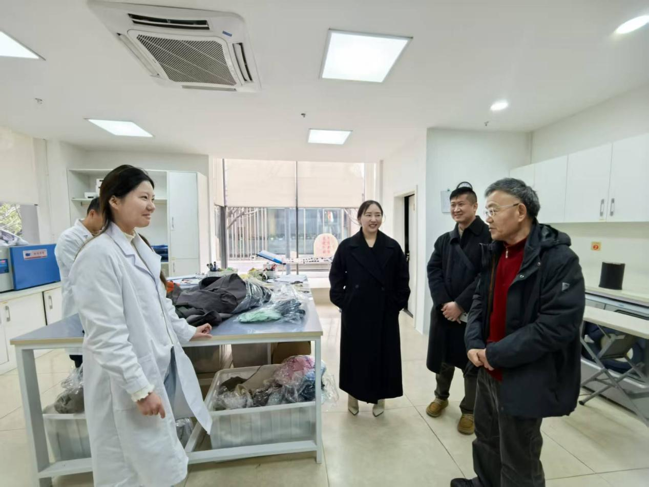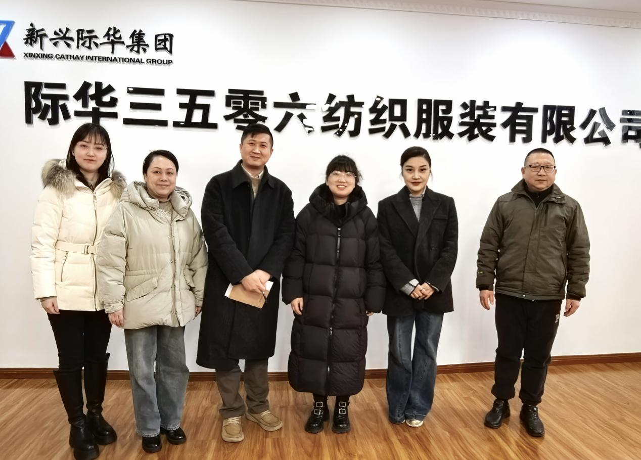 1月30日下午,副院长钟蔚、党委副书记郭泰辰一行来到际华三五零六纺织服装有限公司,人力资源部部长李亚、研发部门部长王苗、技术品控部部长崔琳等人共同参与座谈交流。
