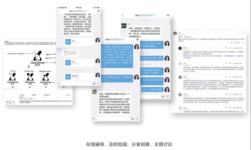 比如钟蔚教授,在其教授的《电脑服装设计Ⅱ》课程上,通过探索,设计了“线上学习+主题讨论+作业跟进+分享答疑+一对一跟进”的教学环节,教学方式突出“引导”和“互动”,教学过程实行“三严”(严格考勤、严格安排教学进度、严格学习过程)、“三宽”(时间宽裕、环境宽松、互动宽松),教学内容关注学生兴趣点。