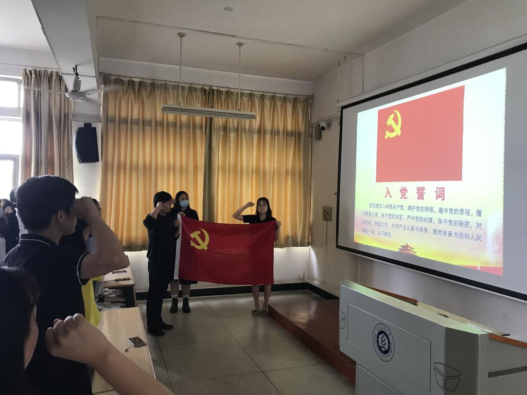 及老师开展好各项工作。三是要践行使命,发挥先锋模范作用。时刻铭记入党誓词,在这样一个新的历史起点,新的征程当中,希望同学们能够真正起到先锋模范作用,在“两个一百年”交汇口、实现中国梦的征程中贡献自己的力量。