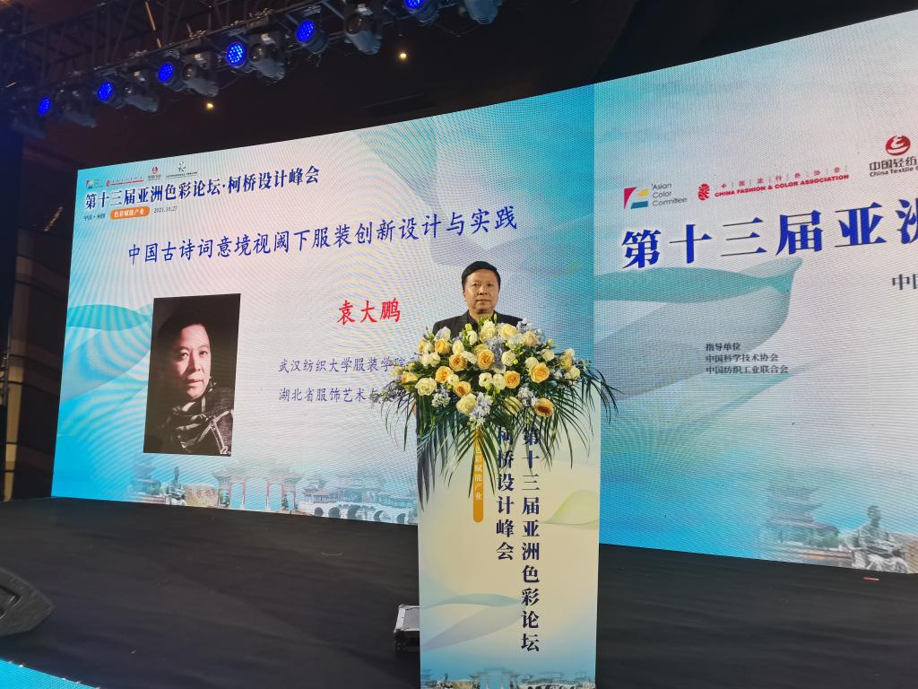 副院长袁大鹏教授受邀出席论坛,并作了题为《中国古诗词意境视域下服装创新设计与实践》的主题演讲。