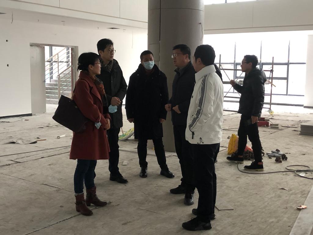 陶辉一行实地考察了毛嘴服装创展中心建设现场,了解到该中心正式建成后将成为学校和当地进行合作的一个展示平台。