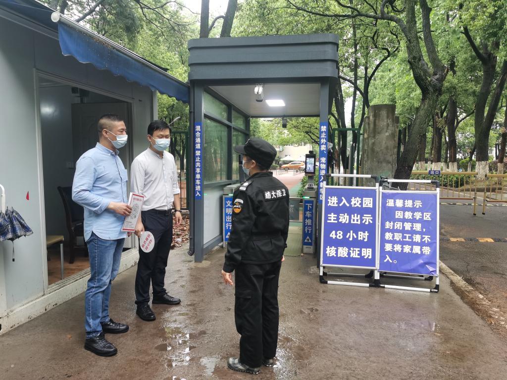 5月2日,黄勇副书记、李斌老师齐心协力建设校园疫情屏障