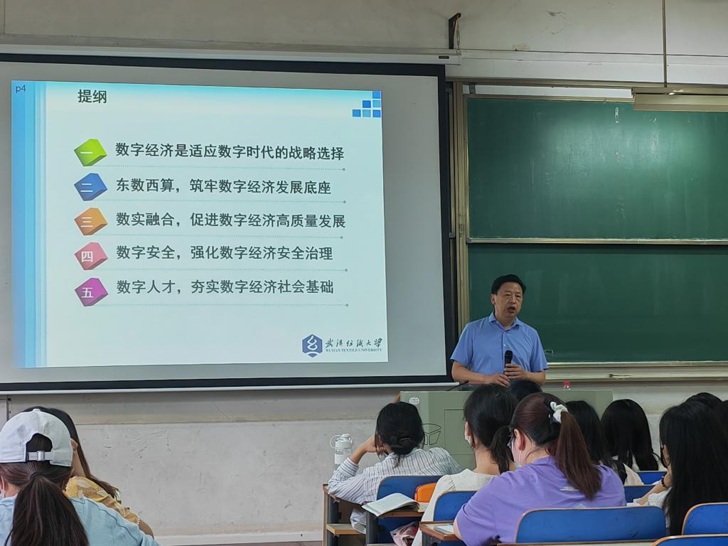2021级服装设计专业100名学生讲授“打造数字经济新优势”的形势与政策课。