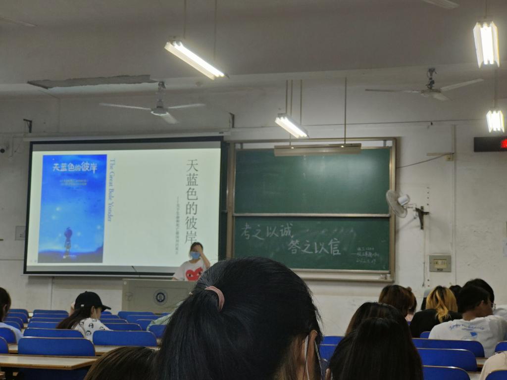 服工12101班汪悠然同学分享的是《天蓝色的彼岸》,该小说透过温暖清雅的笔调和具有童真的视角以及充满哲思的语言,唤起了人们内心深处的美好情感,启迪了人们对于生与死的深刻思索。“这是一本很适合在我们这个时代看的书。单纯,清新,温暖的文字,教会人们学会关爱,珍惜生命,唤起人们内心深处最美好的情感……”