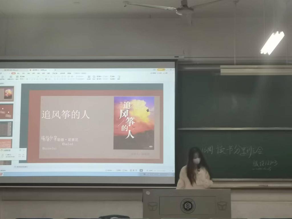 服设12103班张诗瑶同学分享了《追风筝的人》,虽然曾有同学分享过这本书,但每一次都是不同的感觉。“每个人心中都有一个风筝,它可能是我们的梦想,是我们每个人都要去为之奋斗的目标, 也可能是人们一直在追求的真善美,还可能是一种崇高的理想, 但无论怎样,我们都会为了它奋进全身的力量, 一直以来, 我们都是在追风筝的人。”