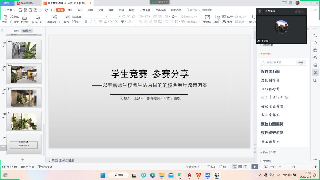王梦雨、韩文慧、勾婷婷、黄怡等八个学生团队依次进行了交流汇报。