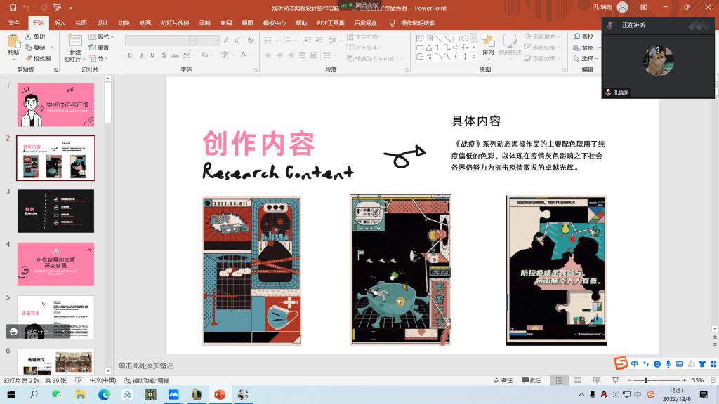 副院长江学为主持会议,会议主题为《艺术类大学生创新创业项目分享》。约300名学生参加了线上会议。