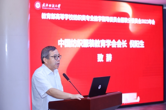 中国纺织服装教育学会会长倪阳生在致辞中对武汉纺织大学承办此次活动表示感谢。他表示,此次年会为搭建高校间专业建设和发展提供了一个相互借鉴、相互学习、相互交流的平台。一是要紧紧围绕“培养什么人、怎样培养人、为谁培养人”这一根本问题,秉承服装分委员会成立的初心,凸显服装行业人才培养特色,全面推进全国服装类一流本科专业建设;二是要以开放融合、学科交叉的姿态去推动专业建设和发展,以思考研讨、共创共享的姿态去提升工程认证的成效;三是要密切关注服装产业发展方向,积极推动教学成果奖申报和数字化赋能,为全面提升人才培养质量积极贡献。他希望各高校能不忘立德树人初心,强化为党育人、为国育才使命,不断培养输送纺织服装行业高素质人才,共同织就美好明天。