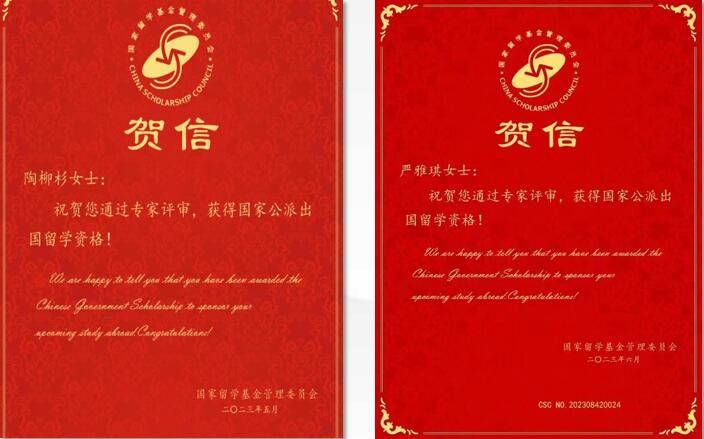 (本科生陶柳衫和研究生严雅琪获国家留学基金委公派留学资助)