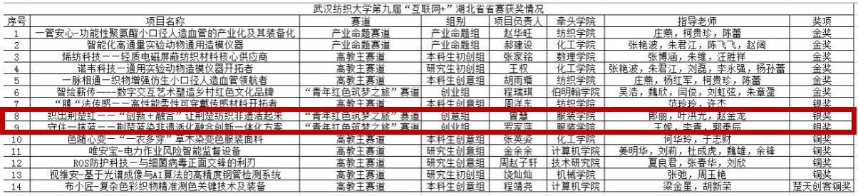 (曾慧、罗家萍两个团队荣获湖北省第九届“互联网+”省赛银奖)
