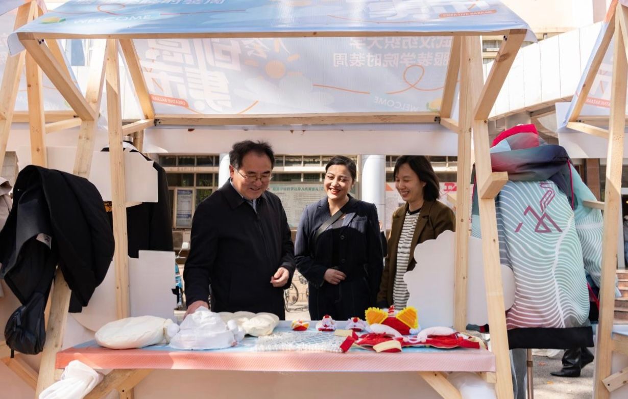 傅欣在致辞中指出,创意集市不仅是南湖校区艺术类学子的欢乐盛宴、毕业生展现四年学习成果的舞台,更是一场武汉纺织大学践行美育教育的实践。他寄语青年学子:时代在召唤,青年当崛起。新的时代在向我们扑面而来,作为新时代的大学生,我们要掌握专业技能,更要善于弘扬优秀传统文化,主动融入创意创新的时代潮流,不断增强自身的文化自信。作为新时代青年,我们更要树立坚定的文化自信,在优秀传统文化中汲取力量,去发挥想象力,去挥动创造力,带着文化的自信,去传承和发扬光大。