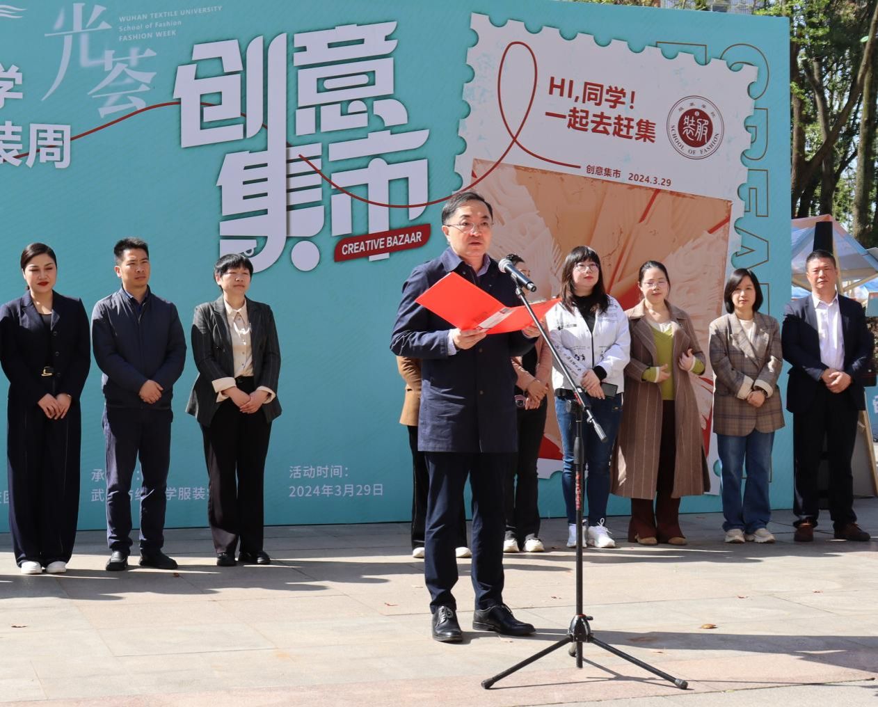 3月29日上午,2024武汉纺织大学时装周“光·荟”创意集市在南湖校区尚知楼前广场隆重举行。武汉纺织大学党委书记田辉玉教授亲临现场参与集市,副校长傅欣教授出席集市并致辞,中国体育博彩
