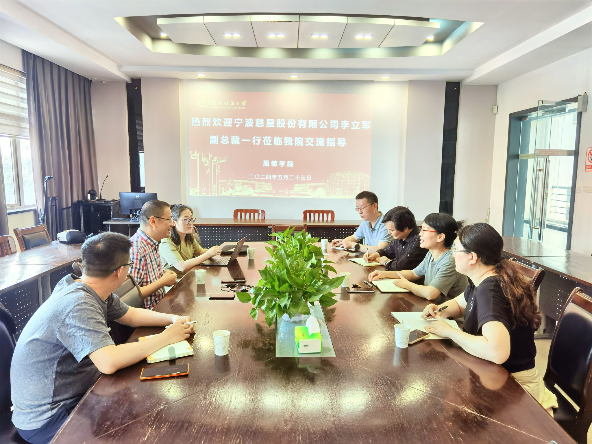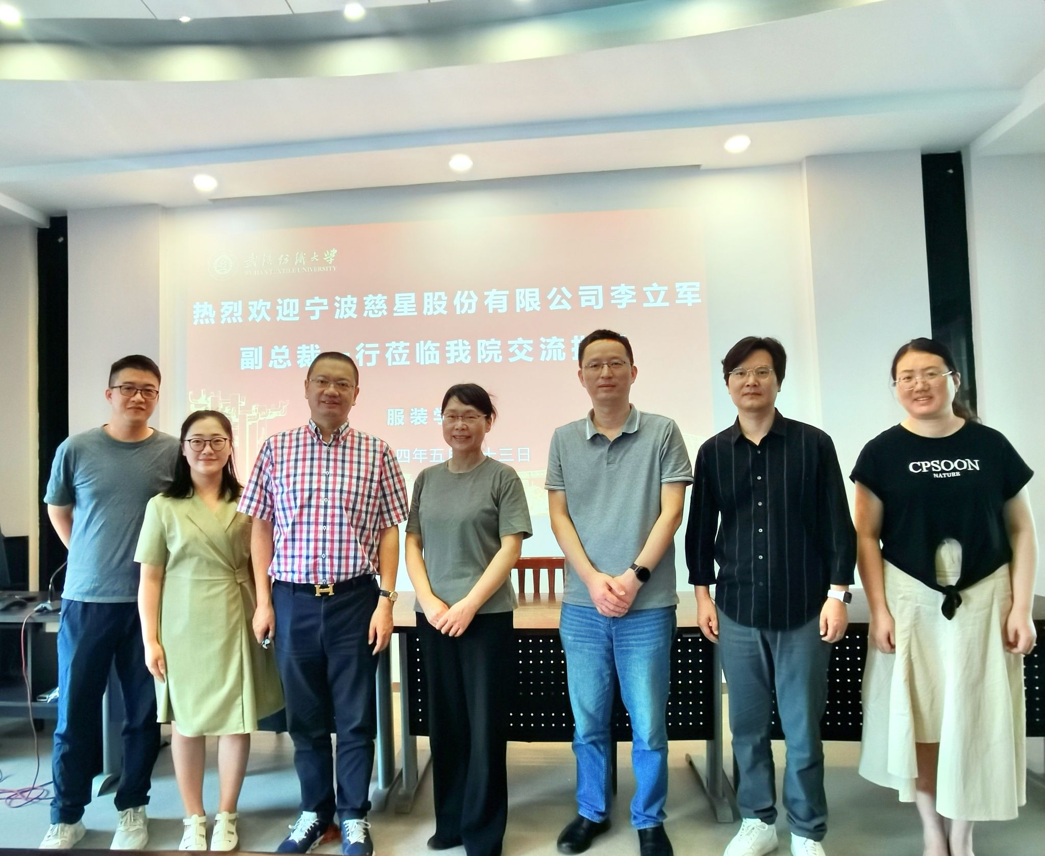 5月23日上午,宁波慈星股份有限公司副总裁李立军就针织产业发展、跨界合作的探索与实践来我院进行调研交流,我院院长陶辉、系主任张俊、青年博士路丽莎及相关工作人员参加座谈调研,会议由院长陶辉主持。