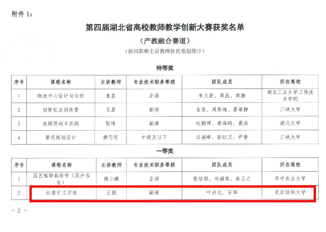 近日,第四届湖北省高校教师教学创新大赛产教融合赛道比赛在华中农业大学顺利落下帷幕,标志着第四届湖北省高校教师教学创新大赛比赛项目全部结束,我校共获得一等奖1项,二等奖1项,三等奖1项。中国体育博彩