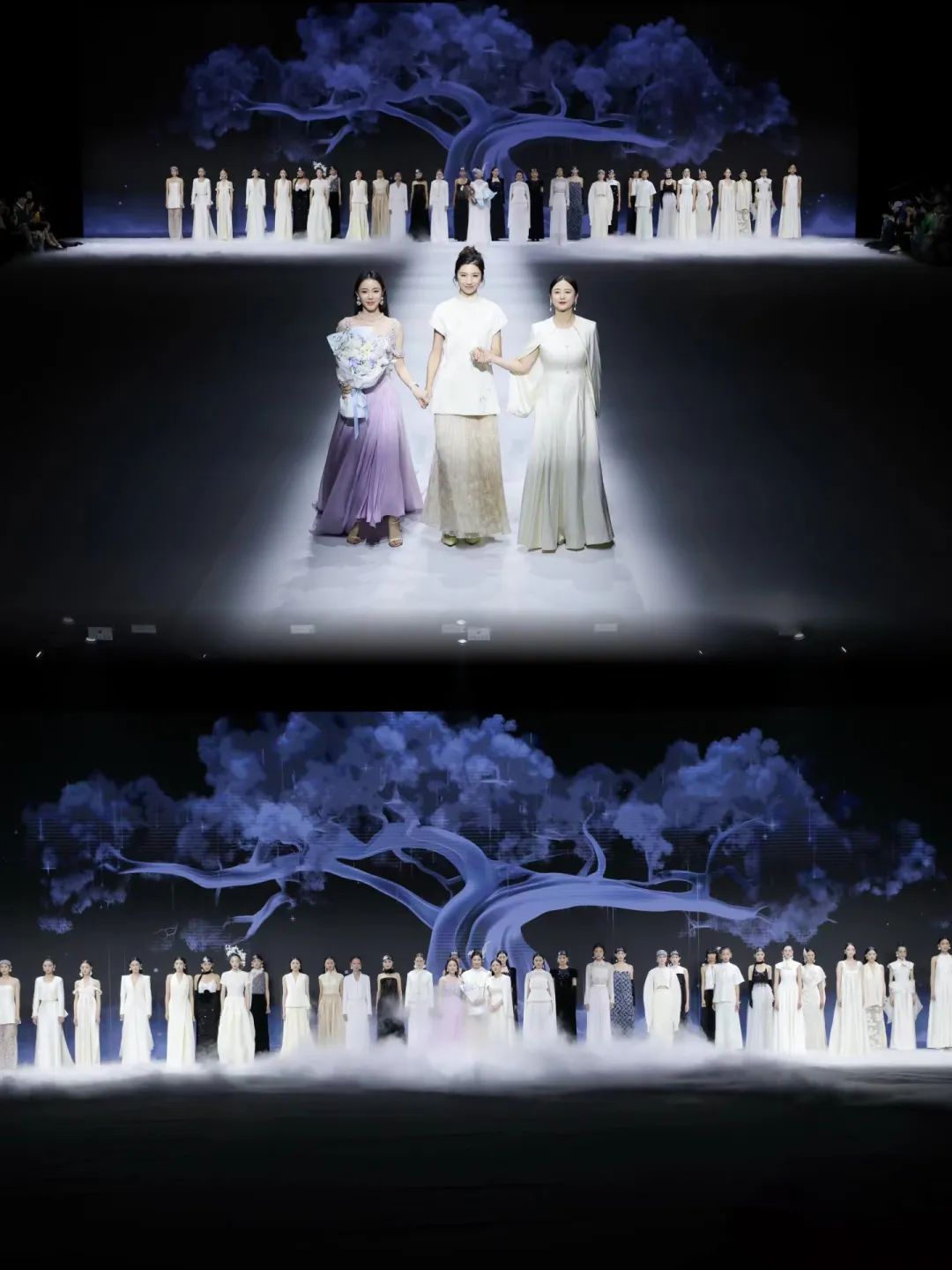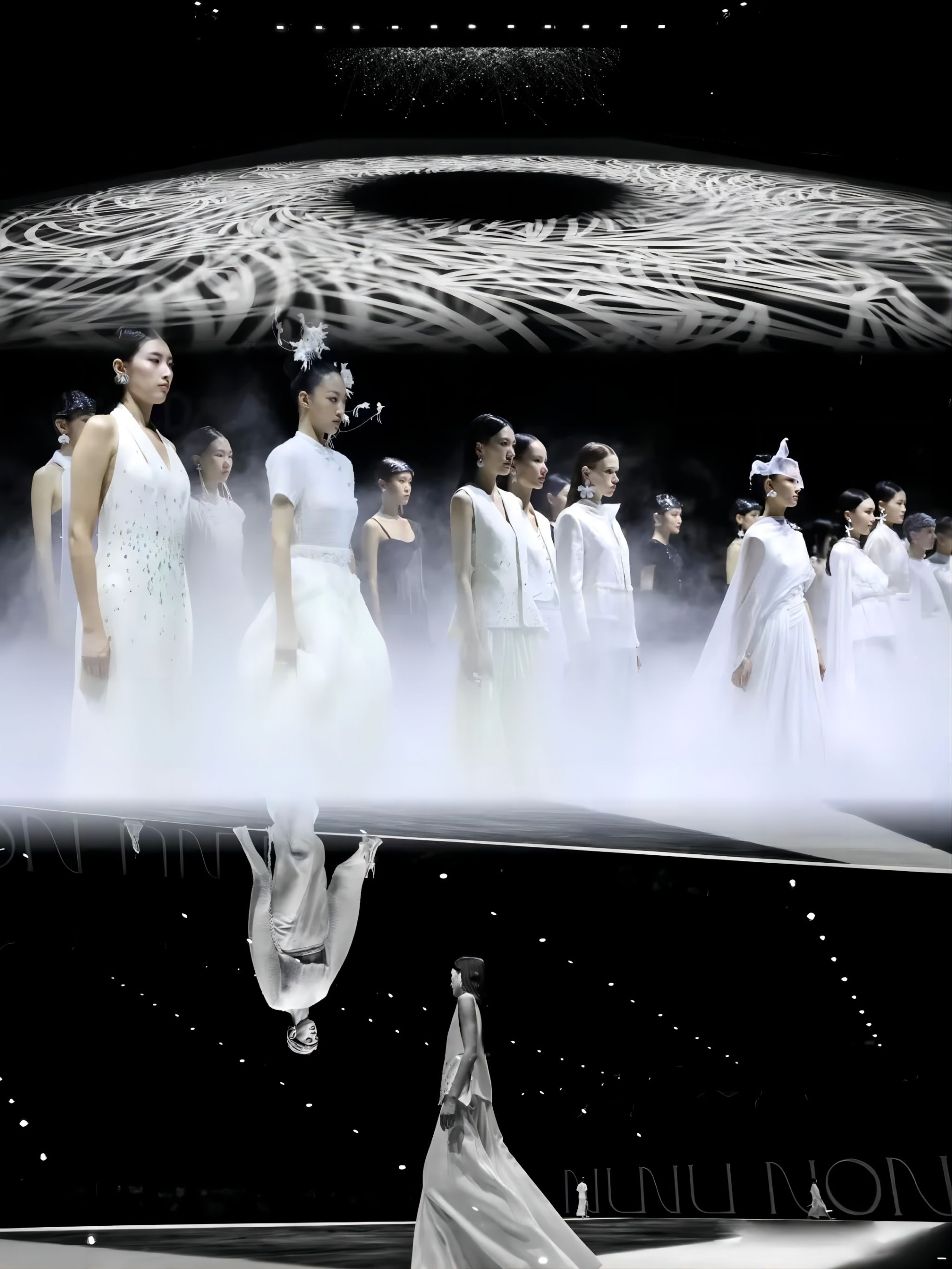 在此次时装周上,张恩以其独到的设计理念将色彩提炼至最纯净的白色,融合了传统刺绣非物质文化遗产技艺,从而深化了东方文化的内在表达。她不仅构建了一个充满生命力的品牌形象,还呈现了一场追求自然和谐、崇尚精神高度的哲学性时装展示。