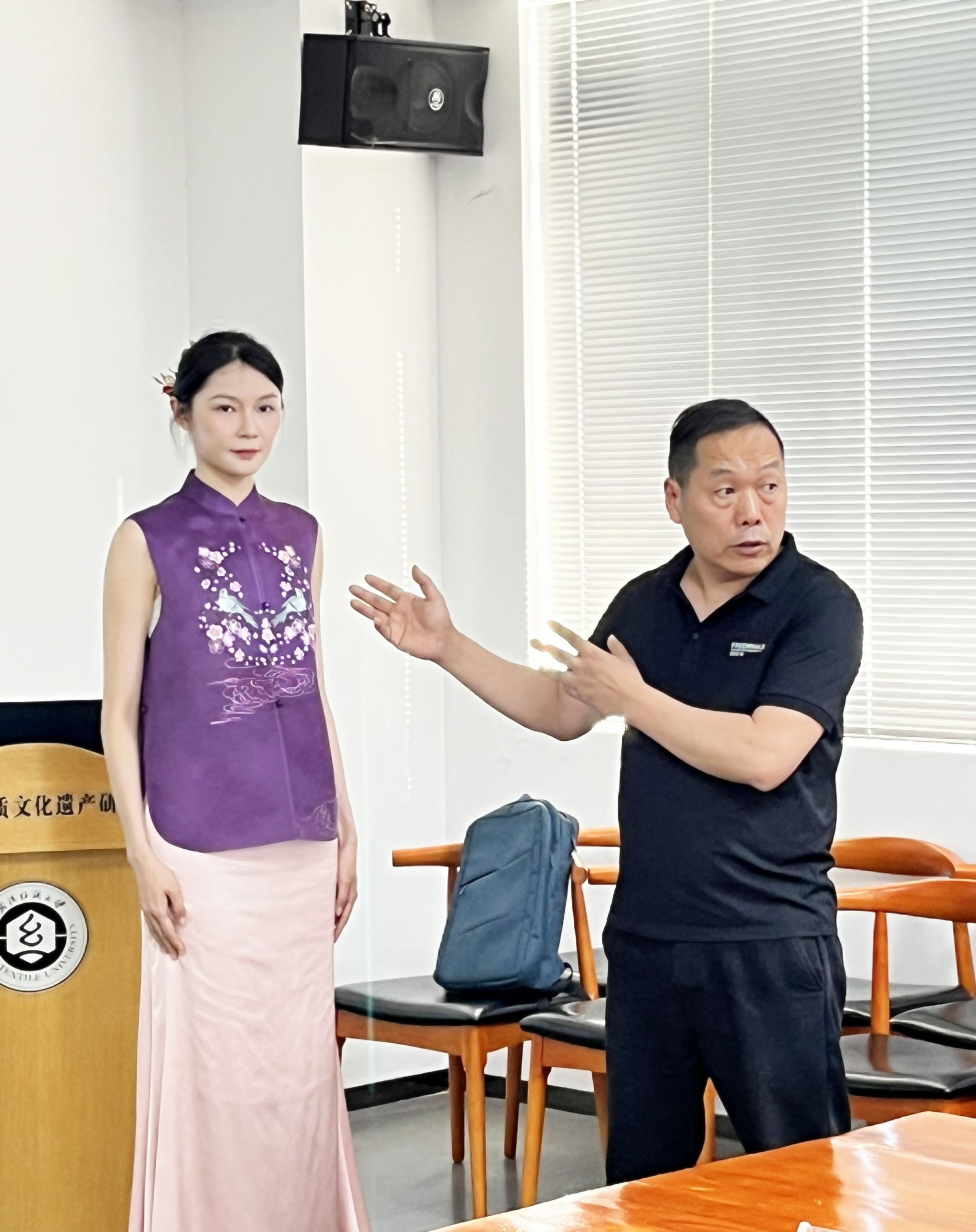 此次调研的主要目的是“长江文化艺术季”开幕活动——非遗服饰秀的筹备情况。荆楚纺织非遗馆负责人叶洪光介绍了设计及筹备工作。武汉纺织大学非遗团队对承办此次展演高度重视,以多年来持续的非遗传承人研培计划为基础,以学术研究成果为理论支撑,从湖北丰富的地域文化信息和纹样元素中,提炼和挖掘梅花这一代表符号,聚焦传统刺绣与当代生活的融通,积极探索当代表达的新语境,努力实现中华优秀传统文化的创造性转化和创新性发展。届时,将展示60余套中式时尚与传统服饰,运用时尚流行色彩和汉绣、红安绣活、缠花、大冶刺绣等多种刺绣工艺,展示荆楚传统刺绣与当代时尚设计交融的创新成果。