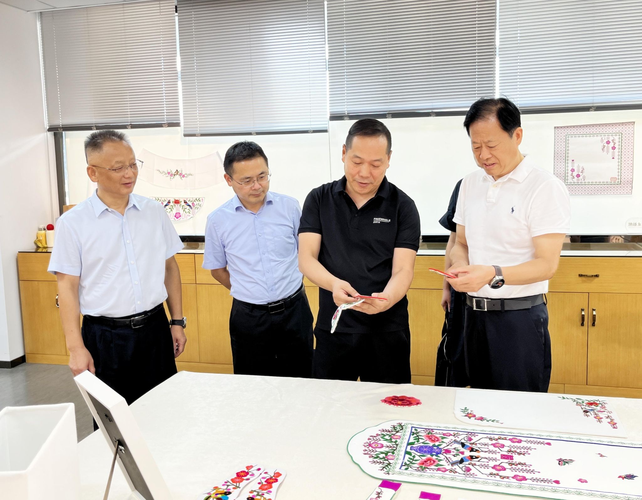 与会领导交流了对非遗服饰秀筹备的建议。陶宏家作出重要指示,一是搭建全省刺绣非遗的展示舞台,让丰富多彩的荆楚刺绣尽可能参与此次展演;二是扩展服装类型的多样化,可涵盖女装、男装、童装,全面展示非遗服饰之美;三是重视解说介绍,让群众了解刺绣的技艺之美及传承发展情况;四是加强宣传报道,提升荆楚优秀传统文化在全国的影响力;五是推动非遗的产业转化,鼓励传承人、服装公司、文创企业参与对接,促进非遗对社会经济的发展作用。