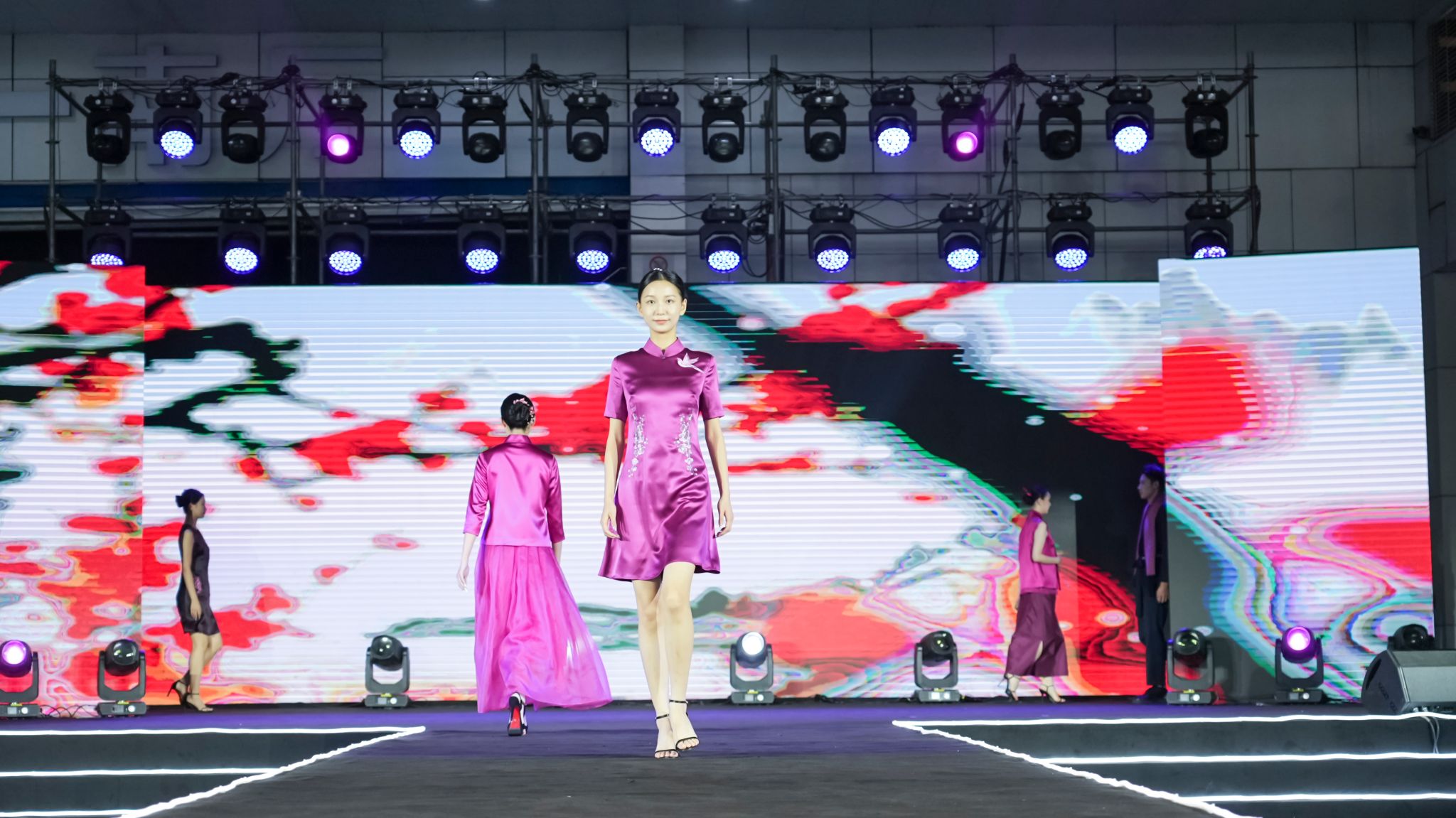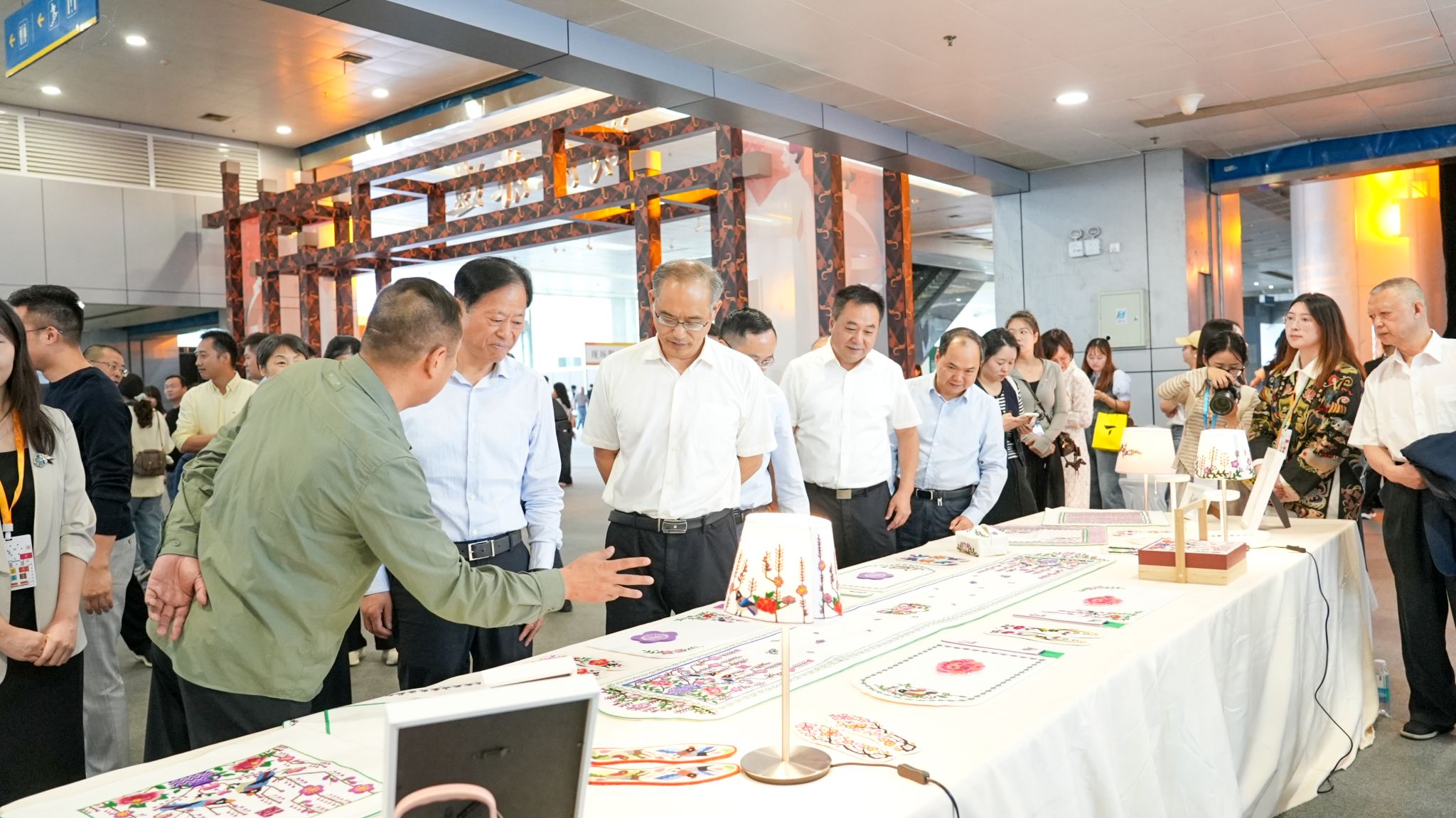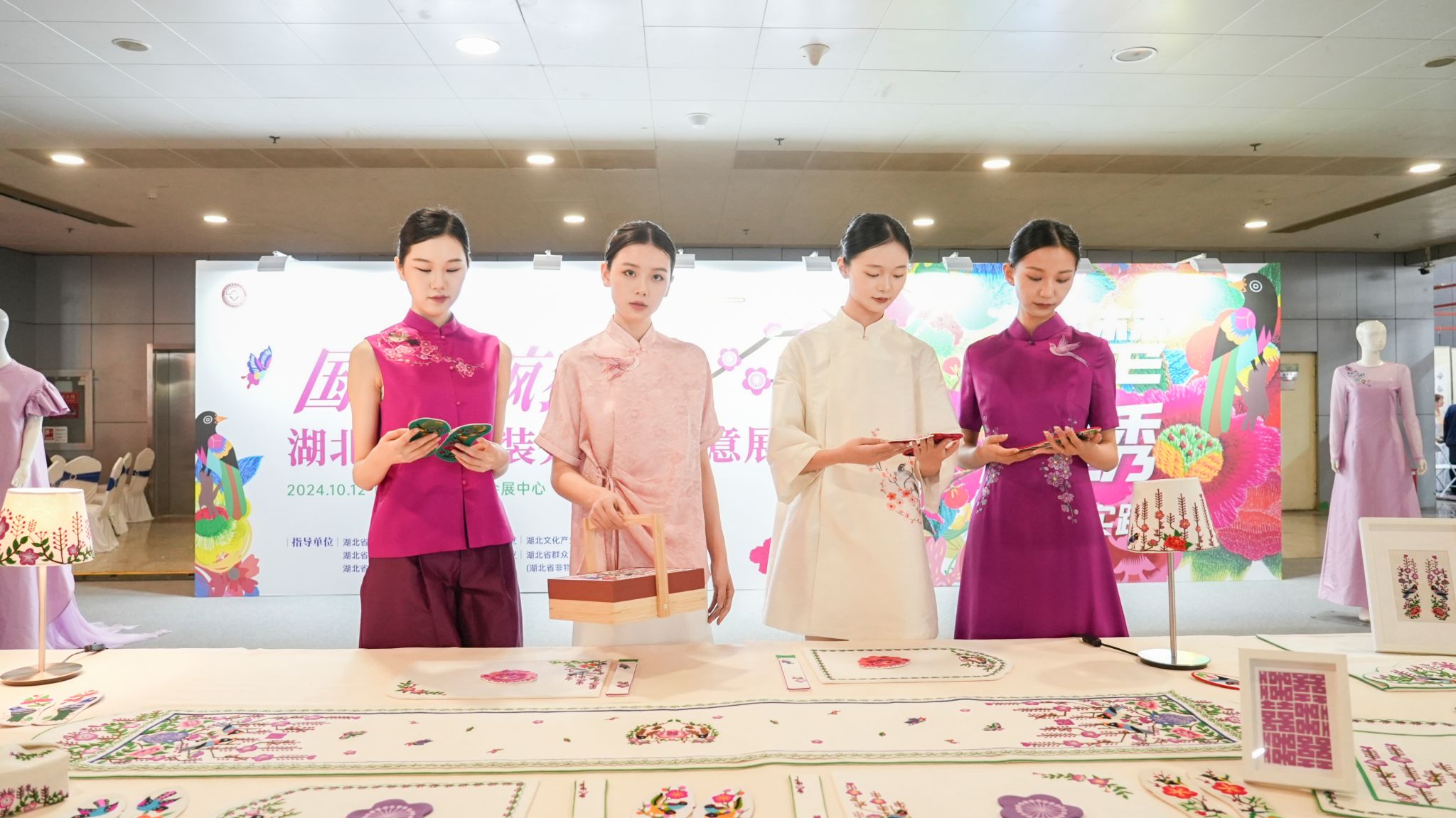 非遗时装秀是此次活动的一大亮点,由武汉纺织大学非遗团队设计和制作,多位非遗传承人绣制完成。服装共包括60余套中式时尚与传统服饰,涵盖女装、男装、童装,采用中式版型及时尚流行色彩,在服装领口、门襟、腰部等局部以及手包、发饰等配饰采用荆楚传统刺绣技艺装饰点睛,共运用了汉绣、红安绣活、黄梅挑花、英山缠花、荆州汉绣、荆州民间刺绣等多种刺绣技艺,集中展示了荆楚传统刺绣与当代时尚设计交融的创新成果。典雅、传统而又时尚的服饰引得观众们不停拍照打卡,也受到了领导们的高度评价。