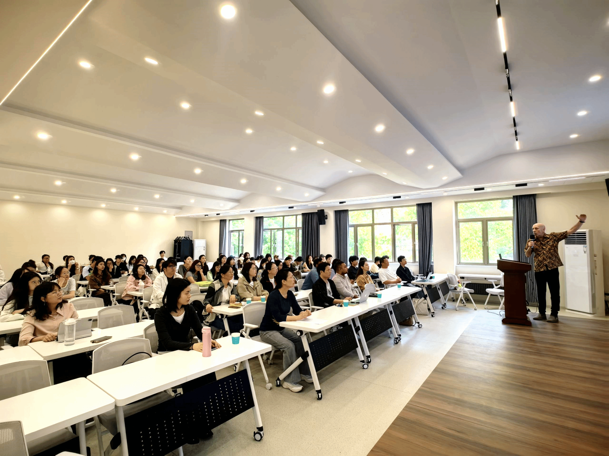 在提问环节,教师与学生们踊跃发言,维克多教授就“AI如何平衡个性化设计与量产需求”与“如何学习AI设计所需技能”等问题,与师生进行了深入交流。